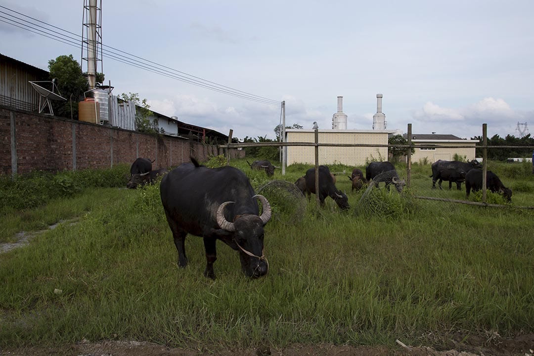 回收場的工業煙囪旁仍住著民工,他們的家有草地、亦有養牛。記者和他們談及污染問題,他們坦言不會喝工場附近的河水,食水都要往鎮上買。記者憶述數年前記者往當地採訪時,大部份分民工仍是貴嶼人,但現在大多數都是外省來貴嶼打工的,因為很多貴嶼人早已憑回收業賺得盤滿缽門,遷出被污染的老家。