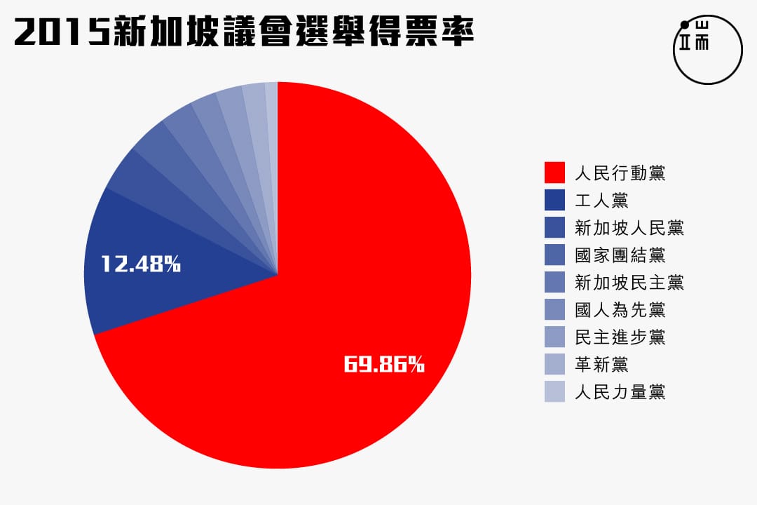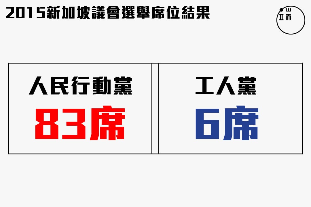 2015年新加坡议会选举,人民行动党以近七成得票率赢得选举,夺得议会89席中83个席位。反对党工人党取得余下六席,保持历史最好成绩。新加坡2015议会选举席位分布。2015新加坡议会选举得票率。人民行动党是新加坡民主选举以来唯一的执政党,自1959年赢得压倒性胜利後,一直占据议会绝大多数席位。反对党派势力薄弱,仅能在议会选举中赢得一两个席位。