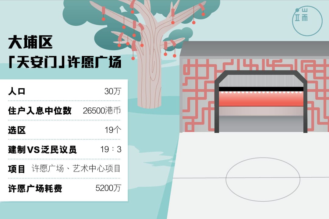 被坊间戏称为“大埔天安门”项目其实全称为“改善林村许愿广场的旅游配套设施”设计方案。