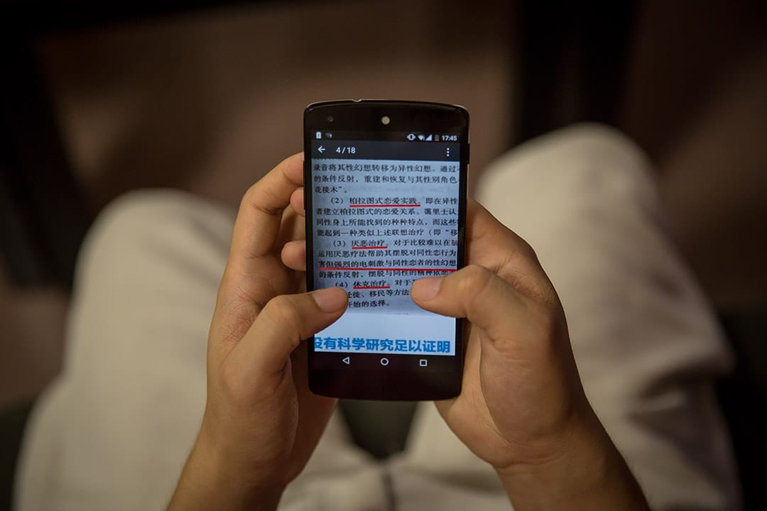 小振,同志平等權益促進會創始人,促進會旨在推進中國同志平等權益的發展。小振展示手機裏關於大陸對同性戀的描述。大學的通識教育教科書說明同性戀屬性變態,以及糾正方法。小振於深圳的辦公室內自彈自唱,辦公室經常用來舉辦家長輔導講座。「那個醫生對我説:同性戀是社會上的不道德行為、是性變態!同性戀者非常有可能得愛滋病然後死掉!」