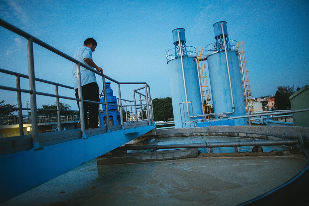 “我们这里原水水质极差,得放很多药剂才能沉淀。”净水厂的人指了指旁边,位于金门东北方的荣湖水库,邻近是大片的高粱田,大量的肥料经雨水冲刷,全进了湖库,让原水水质中充满高浓度的氮与磷。得大把大把的加药,才能沉净。也因为这股异味,让金门人对自来水敬而远之,选择抽取地下水。