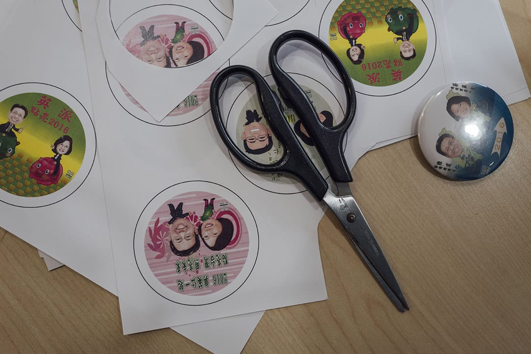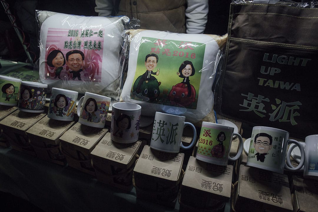 「雖然我賺選舉財,但我也是小英的支持者阿!」吳晉溢,一個民進黨的鐵桿粉絲,在4年前蔡英文未能走完「最後一哩路」的那場選舉中,即已開始自行開發周邊商品販售,像是印有Q版小英人像的馬克杯、枕頭、T恤等等。由於2012年總統大選選情激烈,吳晉溢確實小賺了一筆,而且把部分營收「養了小豬」捐給蔡英文。