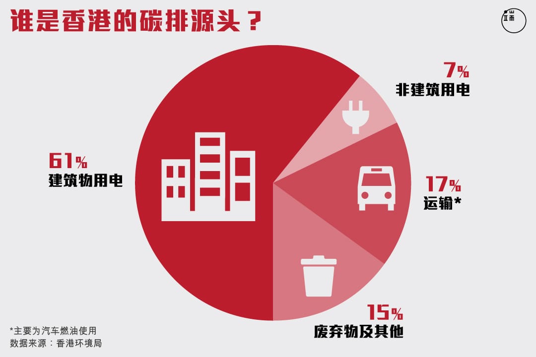 在庄陈有、黎广德出发前,环境局于去年11月发表了《香港气候变化报告2015》。报告指,香港2012年共排放了4,310万吨二氧化碳当量的温室气体,其中以发电为最主要源头,占总排放量约68%,其中90%供给了全港42,000座建筑物,即“建筑物的能源消耗占香港温室气体排放总量约61%”。