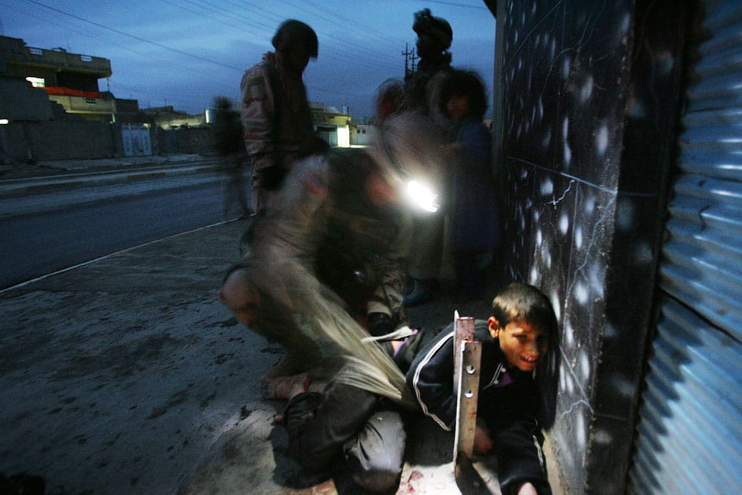 這發生在2005年,Chris在伊拉克戰爭中跟隨美軍拍攝,這個村子他們已經去過幾次,但那天早上當地與美軍有過零星衝突,士兵尤其警戒。凌晨時分,他們決定再次巡邏村子,在黑夜裏,一輛汽車從遠處傳來絲絲微弱的光,並且愈駛愈近,士兵試圖阻止無果,因而向車輛開槍。