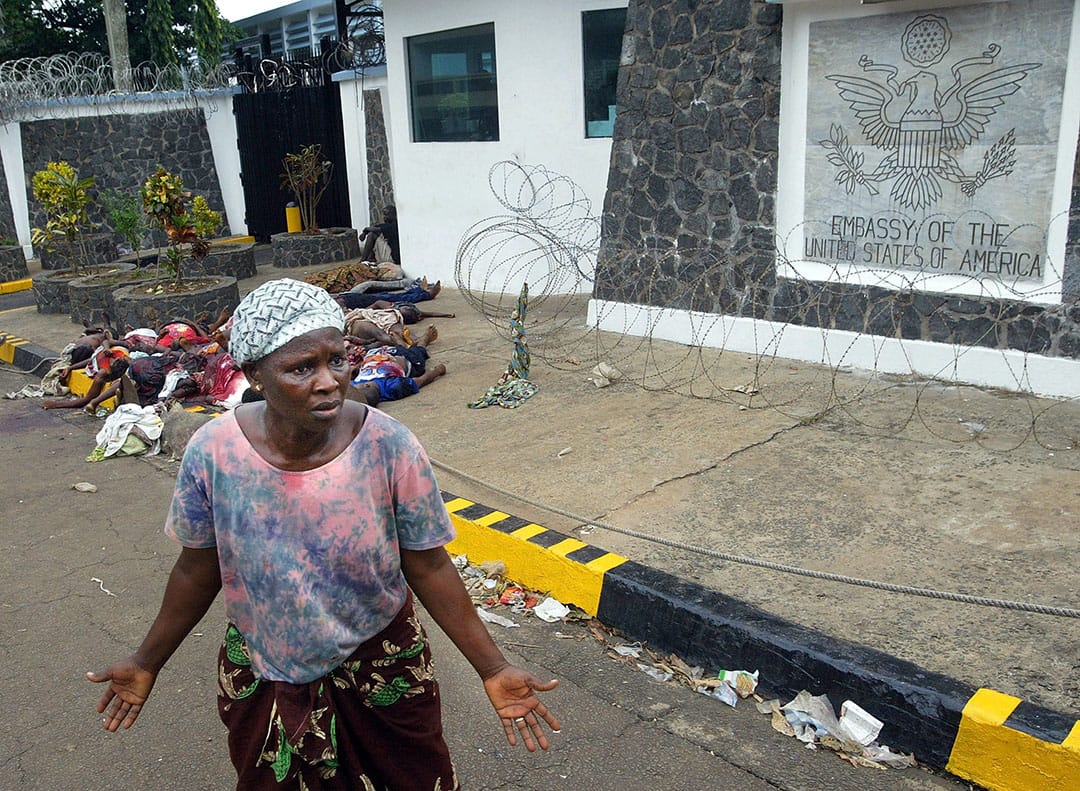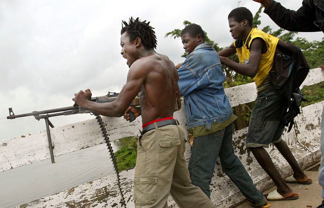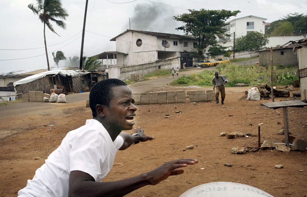 另一張流傳極廣的照片,背後的故事補充了照片以外對於戰爭的想象。在長達十多年的利比里亞內戰中,不少年輕人長期活在炮轟之中,2003年,解除武裝工作緩慢進行,即使簽署了停火協議,但利比里亞政府軍的衝突仍屢有發生。