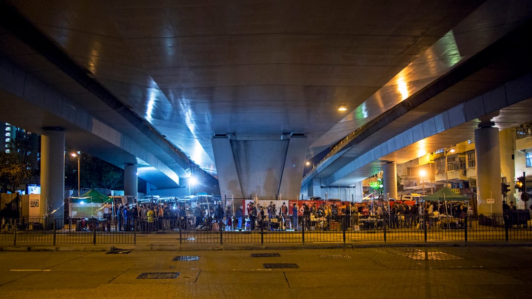 這是香港近年首次由民間團體推動、獲准合法經營的新春熟食墟,儘管僅僅為期三晚,只有14檔攤販,卻吸引了許多市民前來嚐鮮,平日冷清的橋底突然人流洶湧。這個夜市裏,所有檔主都不用再擔心「走鬼」,躲避政府執法,安心地賣起各種地道小食:碗仔翅、 雞腳、 魚蛋、 豆腐花。