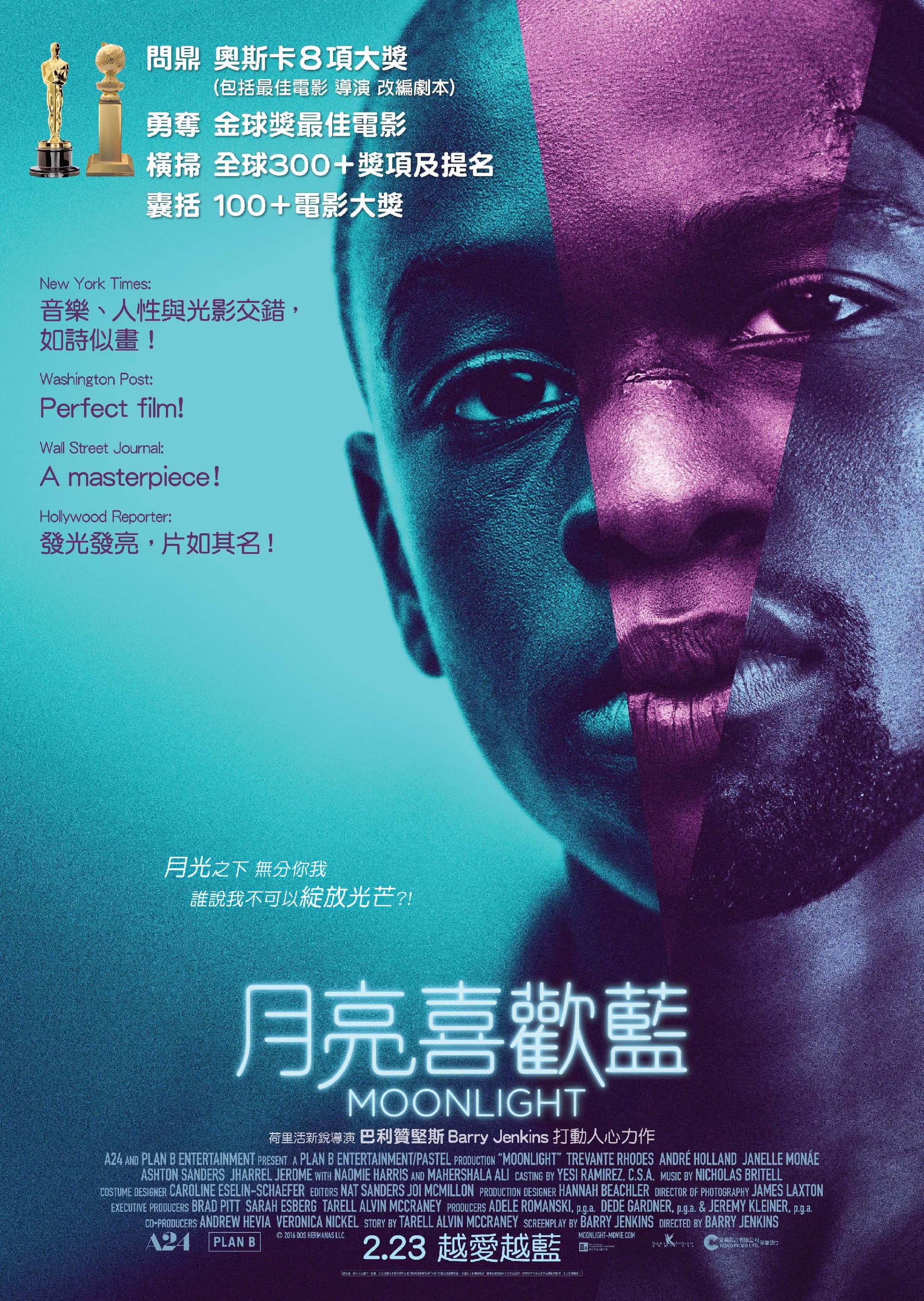 不過影片並非黑人版《春光乍洩》,它要說的是更內在的身份尋索。電影改編自非裔劇作家Tarell Alvin McCraney的半自傳劇本《In Moonlight Black Boys Look Blue》,此劇一直未有機會在舞台公演,結果成為了《月亮喜歡藍》的藍本,由巴利贊堅斯再改成三段式結構。三個章節,分別以男孩生命中三個階段的名字為標題:阿細(Little)、舒朗(Chiron)、黑哥(Black)。 《月亮喜歡藍》官方中文預告片。對應希臘神話