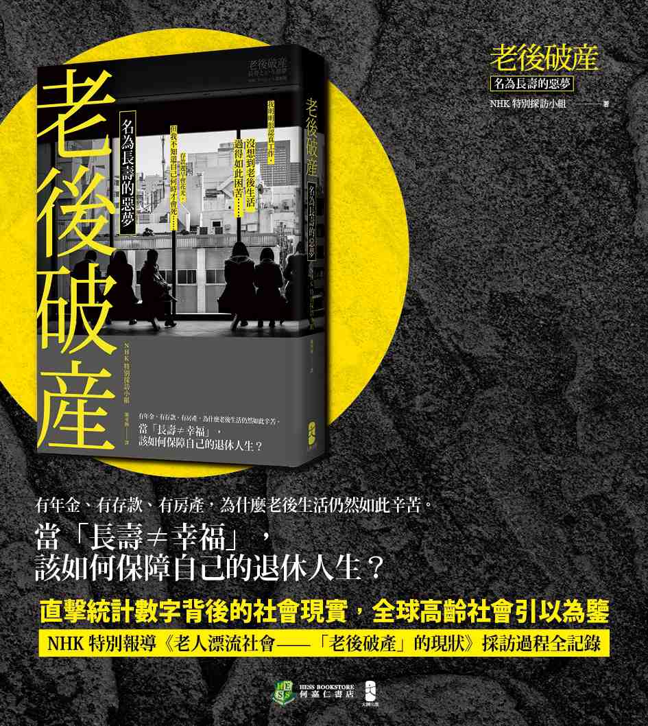 本書為 NHK 特別採訪小組為期一年採訪製作,以金錢問題為主軸,揭露「老後破產」這一現象在居住、生活、醫療、人際關係等方面的各種影響。案例中的每一位老人,年輕時都認真工作,做好退休後的儲蓄計劃,老後生活卻依然孤獨辛苦,甚至失去求生欲望。「長壽」這個幸福社會的象徵,終將成為壓垮現今社會的最後一根稻草。「老後破產」問題不只衝擊65歲以上的退休老人,更進一步蔓延至工作人口。當社會陷入惡性循環,「人口老化」不再只是政府政策的問題,而是每個人都必須面對的嚴酷現實。