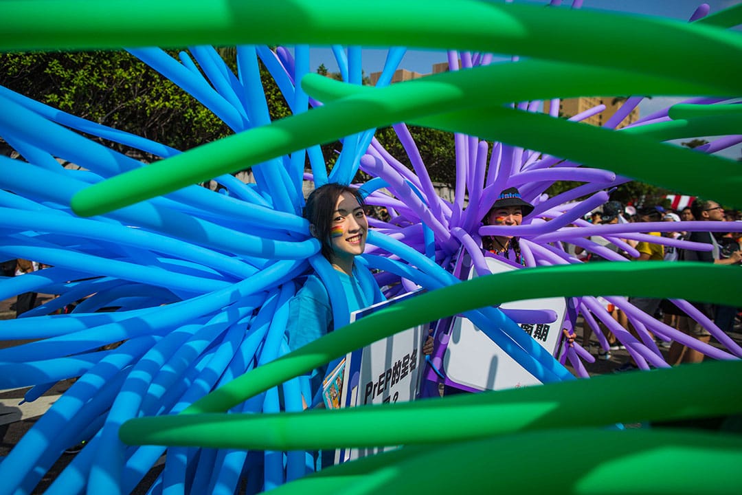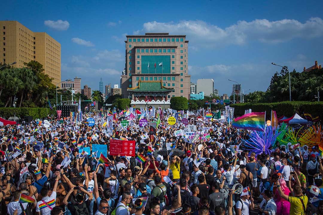 台灣同志遊行踏入第 16 年,今年的主題為「性平攻略由你說.人人 18 投彩虹」(Tell Your Story, Vote for Equality),吸引二十多個國家的同志朋友及超過180個報名團體參與,其中有支持平權的宗教組織及同志牧師。遊行隊伍昨午於台北凱達格蘭大道集合,由代表多樣社群的六色彩虹大旗帶頭出發,各隊伍分東南西三路遊行。台灣同志遊行聯盟表示,今年約13萬7千人參加遊行,超越去年的12萬人,再度創下台灣同志遊行的新紀錄。