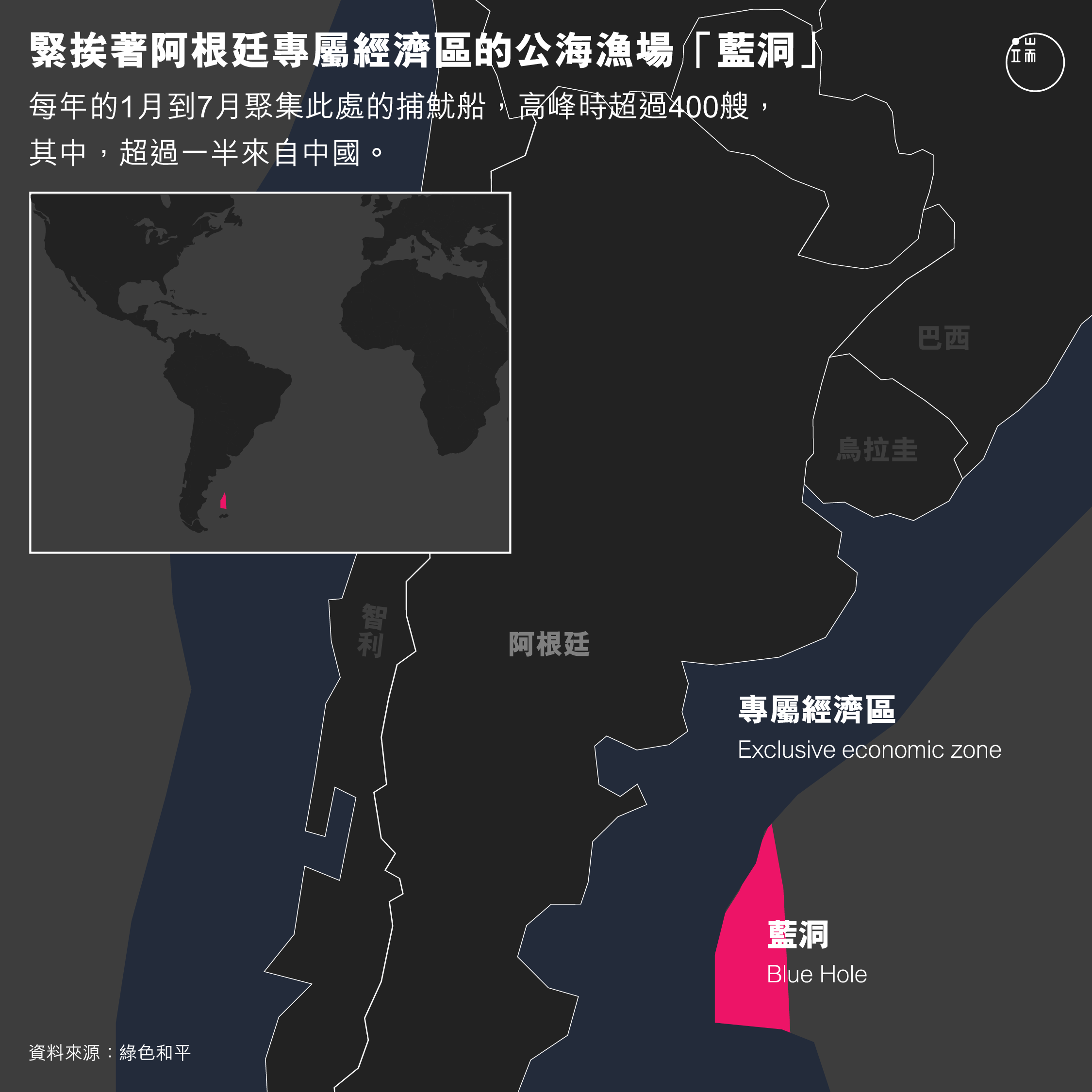 換句話說,「藍洞」範圍不大,競爭卻很激烈。在這裏作業的中國漁船,違規進入阿根廷專屬經濟區捕撈的行為,時不時會出現,有時還會與近年來加緊了對自家海域管理的阿根廷海軍,發生衝突。