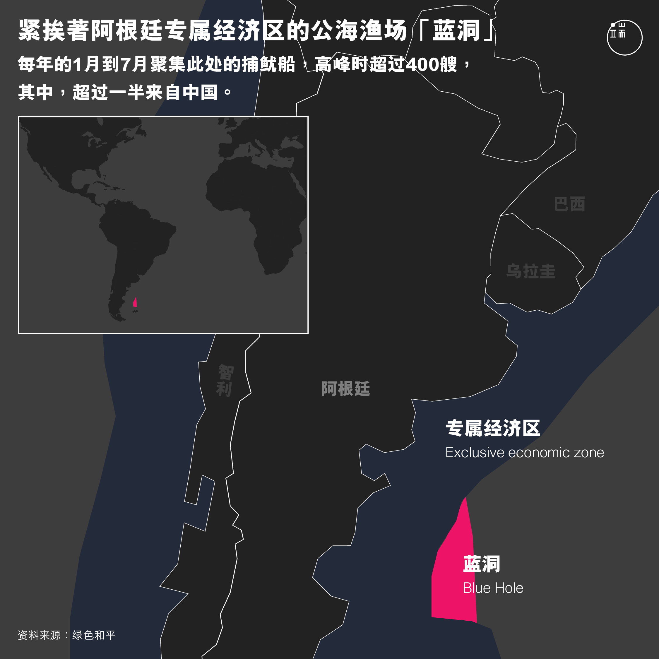 换句话说,“蓝洞”范围不大,竞争却很激烈。在这里作业的中国渔船,违规进入阿根廷专属经济区捕捞的行为,时不时会出现,有时还会与近年来加紧了对自家海域管理的阿根廷海军,发生冲突。
