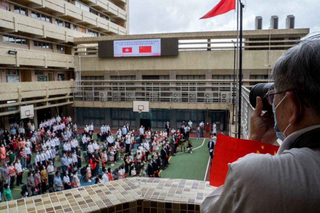 7月1日早上,新任政务司司长、原保安局局长李家超以署理行政长官身份主持升旗仪式,护旗方队以普通话读出口令,并首次以中国式步操进场。对海的尖沙咀钟楼下,亦有多个爱国团体举行升旗礼及奏唱国歌。