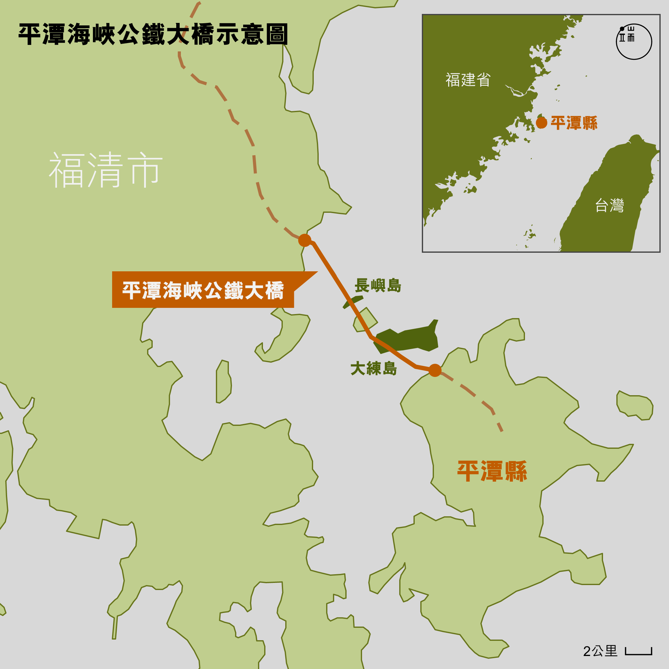 橋的全稱叫平潭海峽公鐵大橋,是中國第一座公路鐵路兩用跨海大橋,也是京台交通通道的必經之路。2004年,北京出台中國高速公路網規劃,被稱為中國歷史上第一個「終極」高速公路骨架佈局、北京直達台北的高速公路規劃便正式出現在此官方文件中。2008年,北京直達台北的高鐵也被寫入了規劃。