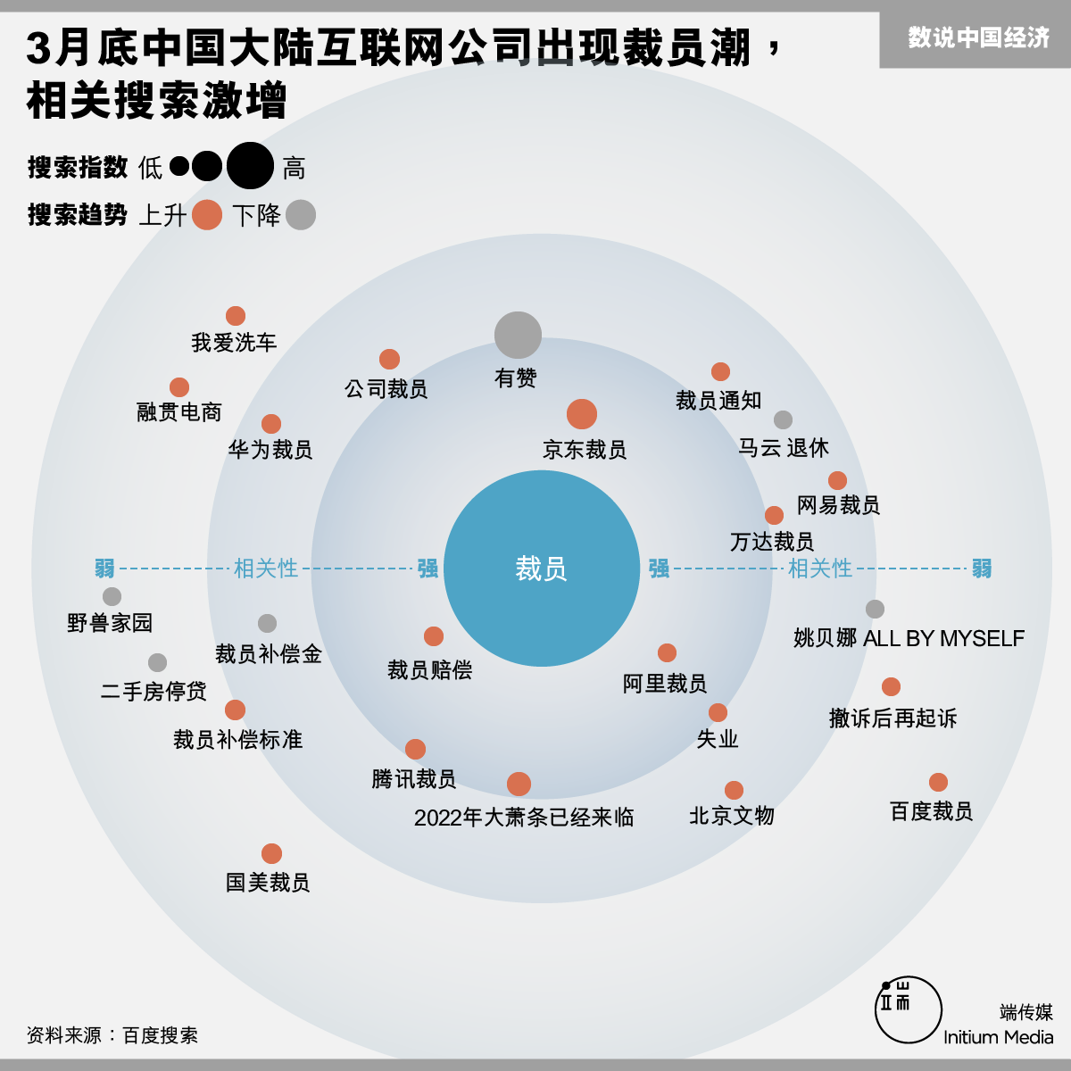 2021年下半年开始,互联网大厂便频频传出裁员消息。2022年第一季度,阿里、腾讯、京东等电子商务巨头,接连因裁员登上热搜。据《华尔街日报》引述消息人士,腾讯、阿里巴巴、滴滴等,均计划在今年内裁撤上千人,纵然互联网公司每逢年末都会进行“业务优化”——即解雇表现不佳的员工,但本轮裁员动辄20%甚至更高的比例并不常见,可能与2021年相关领域的监管及经济增速整体趋缓有关。