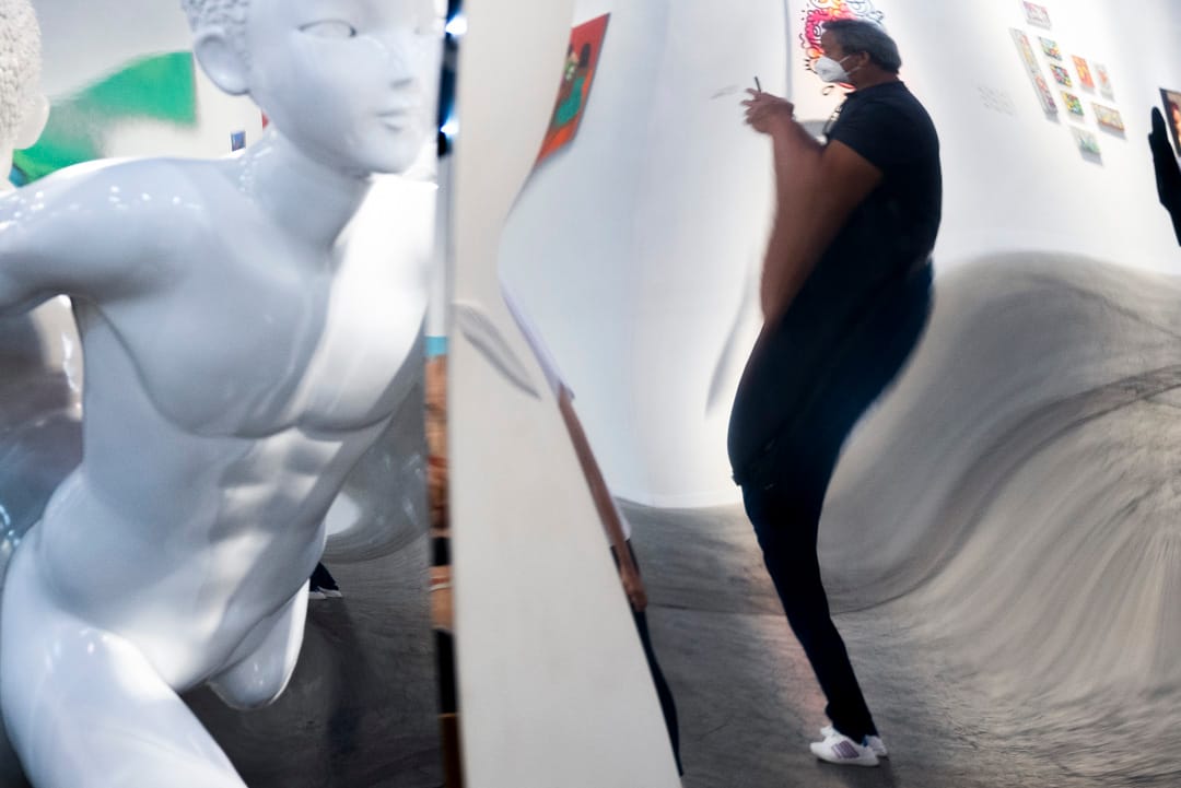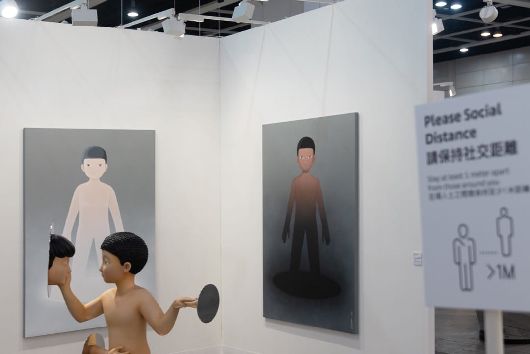 戴着口罩,观一个艺术展,早不是新常态。我们眼里的风景,如今变成:那些雕塑、画像里的人,为何都不需要戴口罩?如此坦白地注视着一个人的五官。不过,也请你跟艺术品保持距离。一米,一点五米。请保持社交距离。这早不是新常态。