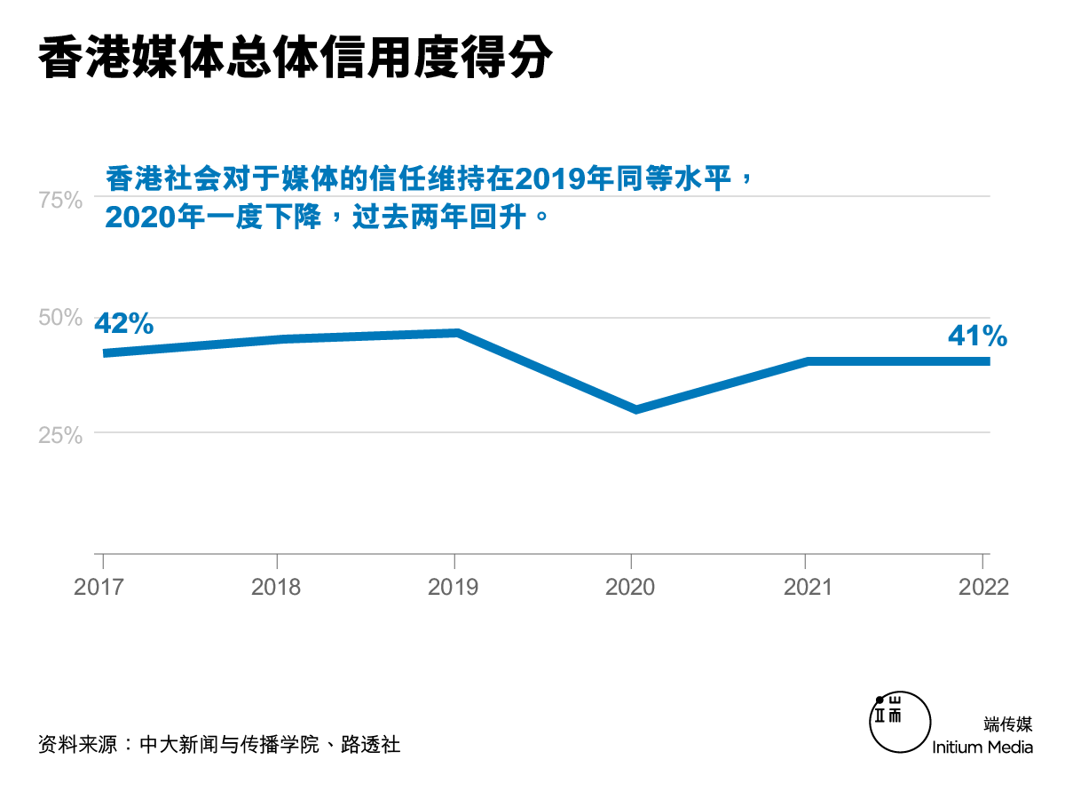 但是从数据来看,香港对新闻的readership还在。中大新传每年都会跟路透社做一个新闻阅读报告,其中有一个Trust Score,有趣的是现在香港社会对于媒体的信任其实依然维持在2019年同等水平,2020年的时候它掉下去了,但是过去两年又回升了。这两年我自己和身边的朋友都没有觉得有一个很明显的“逃避新闻”的倾向。刚刚纪尧提到的一些独立媒体和前辈新开创的新闻平台,作为一个newcomer to the industry,他们一开始受到的关注其实是挺不错的。