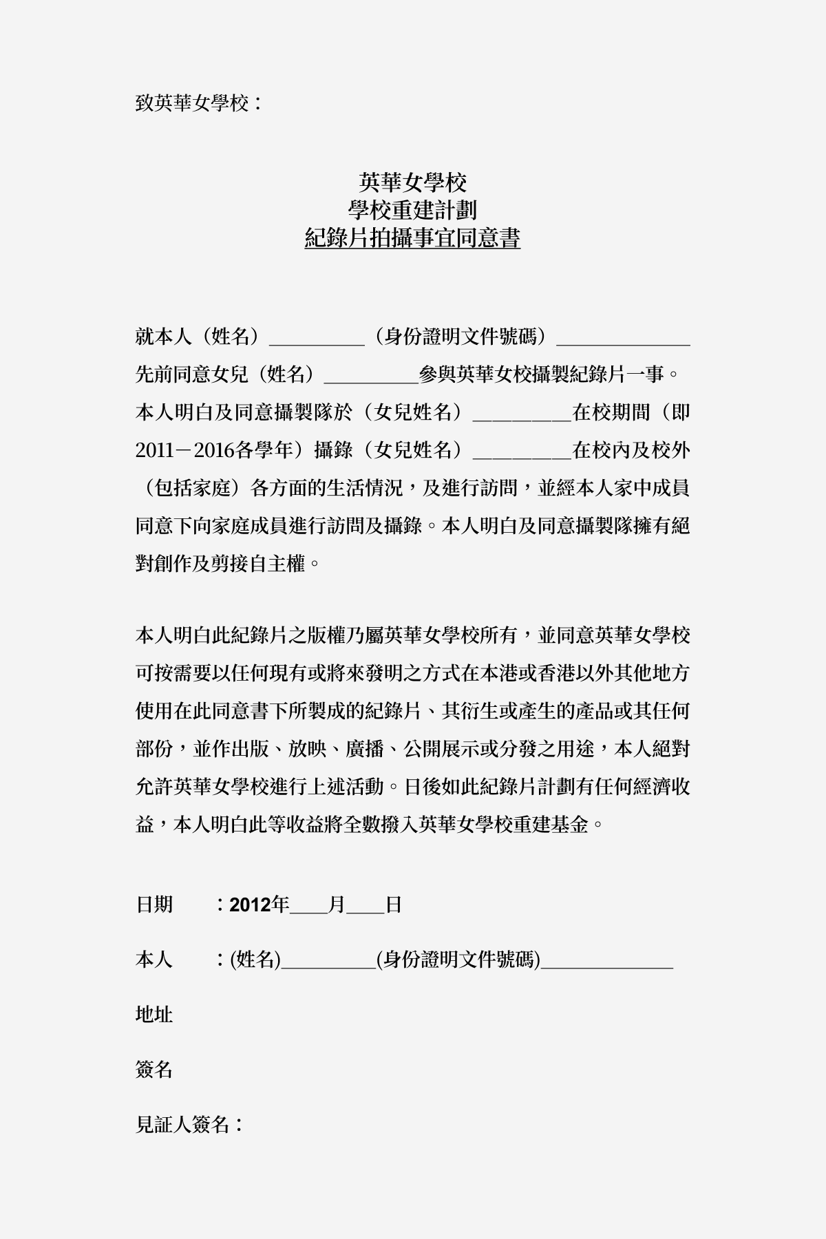 “肠”表示,根据《香港合约法》基本原则,合约双方都要有付出/代价(consideration),才可以构成合约。付出(或代价)对其中一方可能是金钱(酬劳),可能是服务,双方有此代价交换,合约才会成立。只确定单方面付出的“合约”,于合约法内不构成效力。相关报导中公布出的同意书中,学生属无偿跟拍,因无酬劳,所以双方的协议不具备合约的约制力。