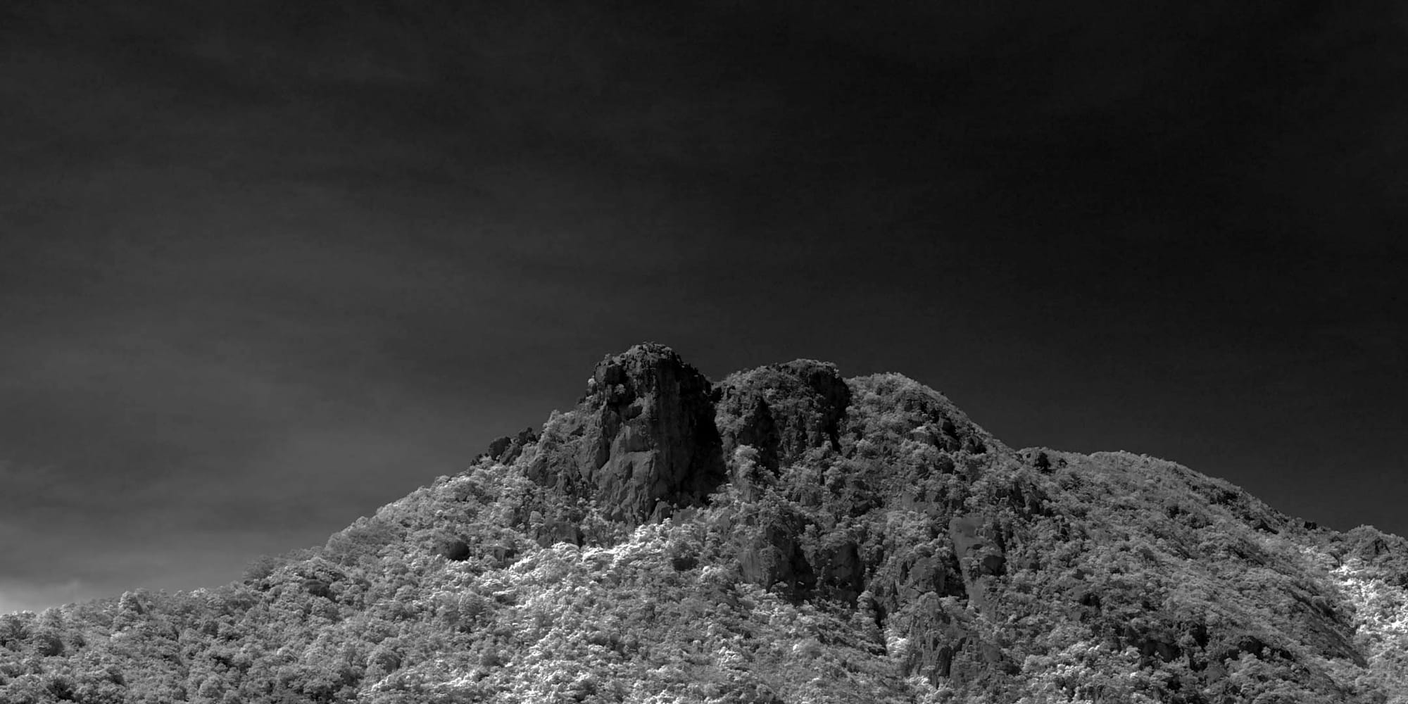 透过红外线摄影对光谱的选取及限制,为视觉经验带来前所未有的光⸺引领在现实与 幻觉之间前行,走过铺满浮花杂草的海岸、穿越光影斑驳的溪径、仿佛听见街角的人们 在耳语呢喃,诉说着百年的兴盛与消亡。