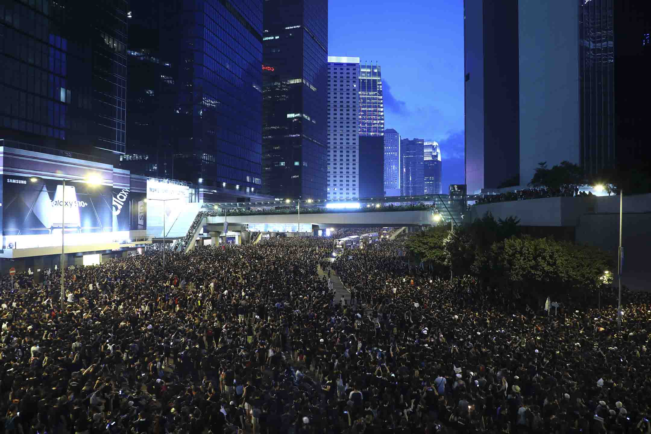 2019年6月16日,由香港民间人权阵线 Civil Human Rights Front 举办的“谴责镇压,撤回 恶法”大游行,游行人士到达政府总部一带后仍然留守,主办单位公布游行有200 万零1人参与。