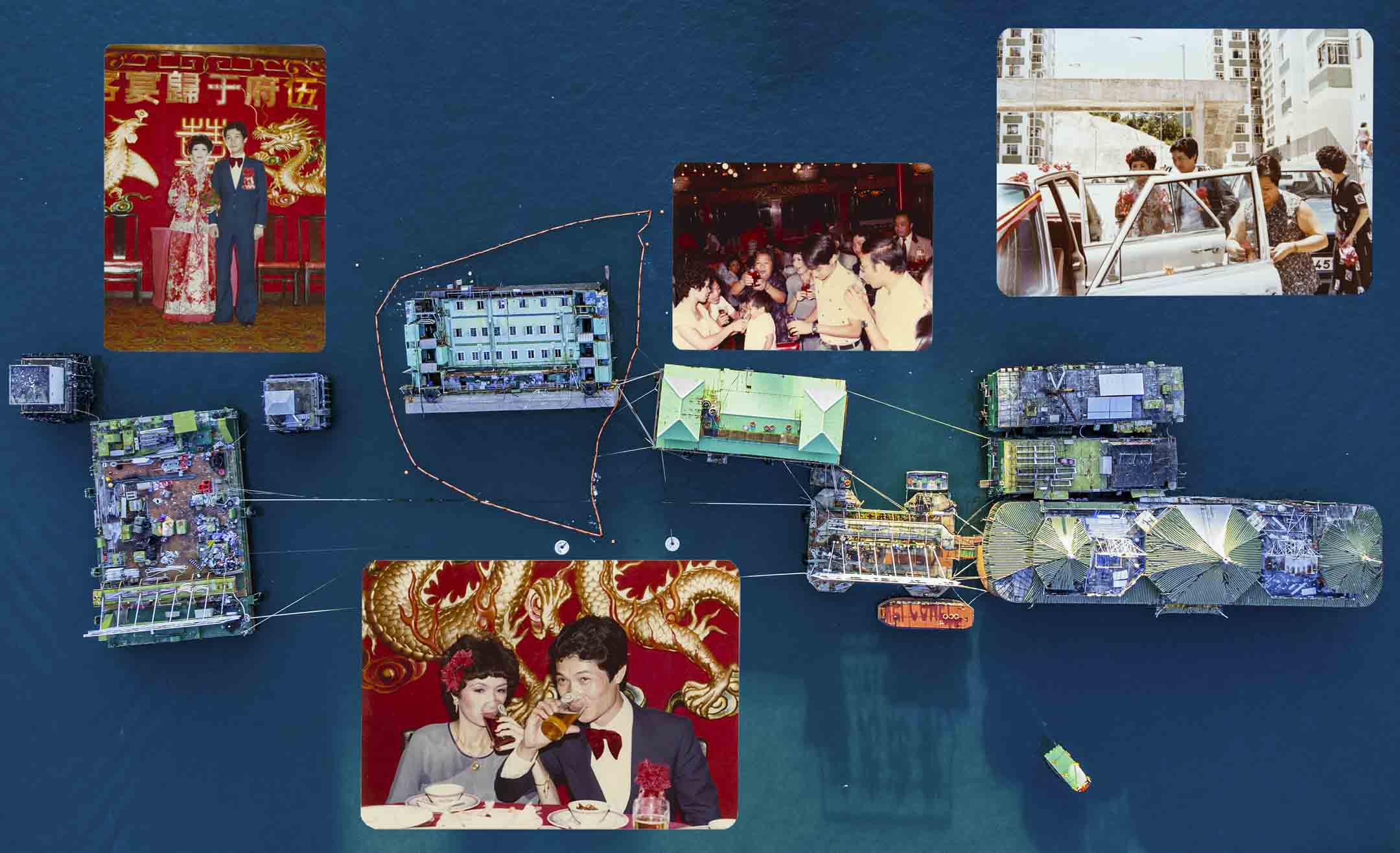 2022年6月14日,珍宝海鲜舫离港驶向南中国海。对这艘富东方情调的船,我没有具体的记忆,唯一印象是《食神》和妈妈的船上婚宴。珍宝沉没,象征意义大于一切,这些年有太多一个时代的结束,珍宝是香港人情绪的载体。我人在台湾,无缘纪录,回港已 是 2023,一切云淡风轻。回家后,寻找家庭相簿,想回到那只还未沉没,又来不及登上 的船,凝望到的是母亲三十年前身影,我挑选几张泛黄的照片放在书内,离开了香港。