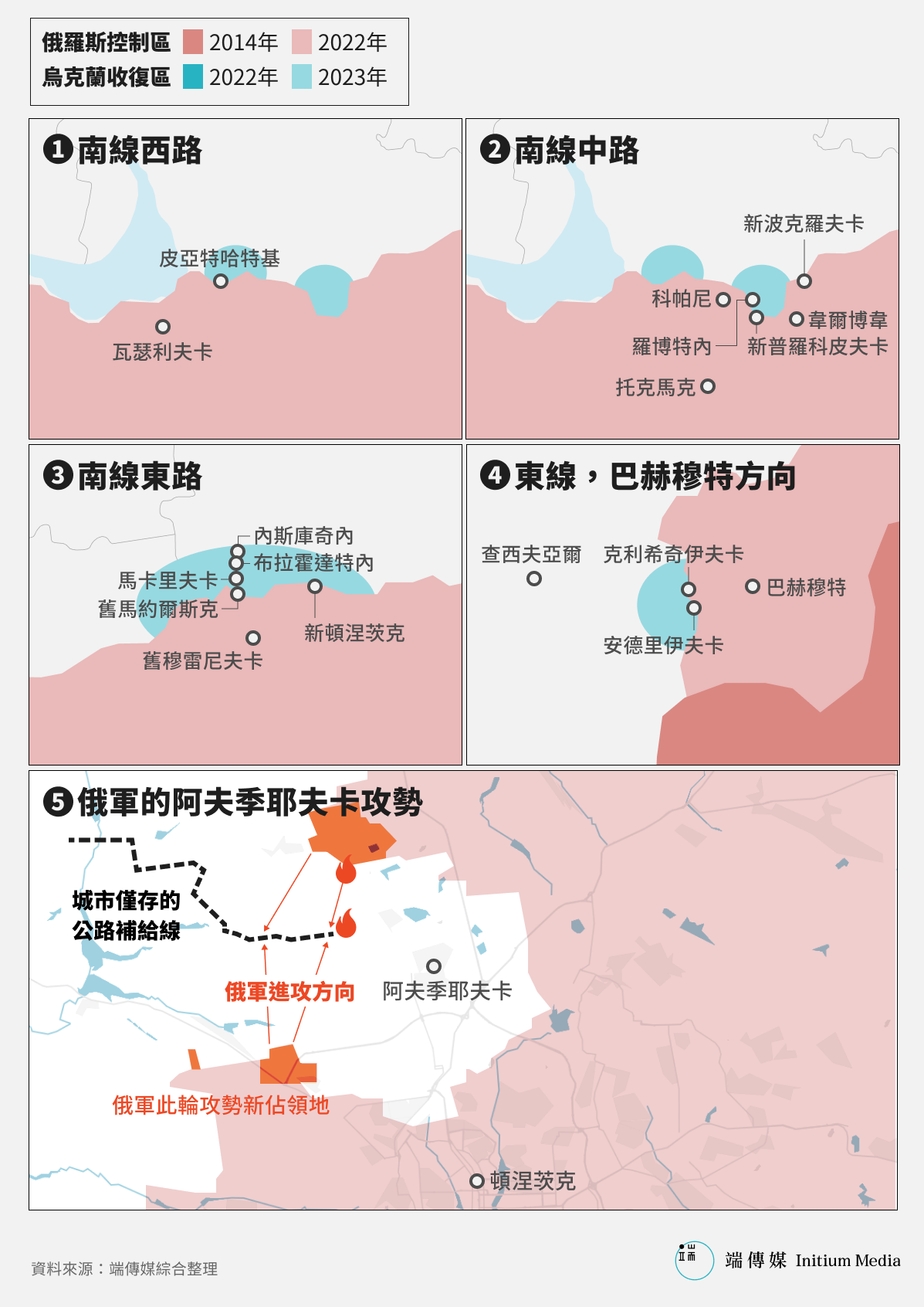 儘管如此,由於阿夫季伊夫卡本身已處在半包圍圈內,且只剩一條主要補給線路,其防禦難度遠高於交通樞紐巴赫穆特,俄軍稍許推進都會大大惡化城內守軍的處境。延伸閱讀:《俄烏戰爭一週年,有哪些戰略教訓?高科技武器為何無法終結戰事?》