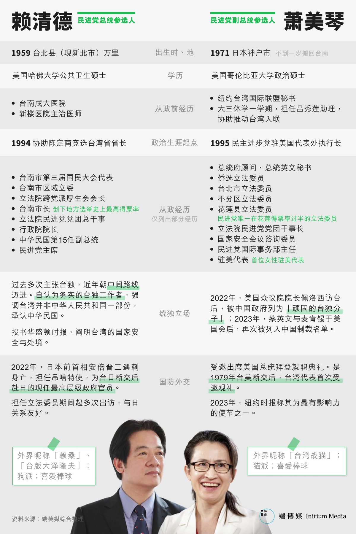 11月20日是台湾中央选举委员会受理第16任总统、副总统与第11届立法委员选举登记申请首日,亦是选举倒数54天之期。民进党总统候选人赖清德当日在竞选总部正式宣布副手人选:前驻美代表萧美琴。他说,“相信这是众所期待的决定,也是最好的决定。”