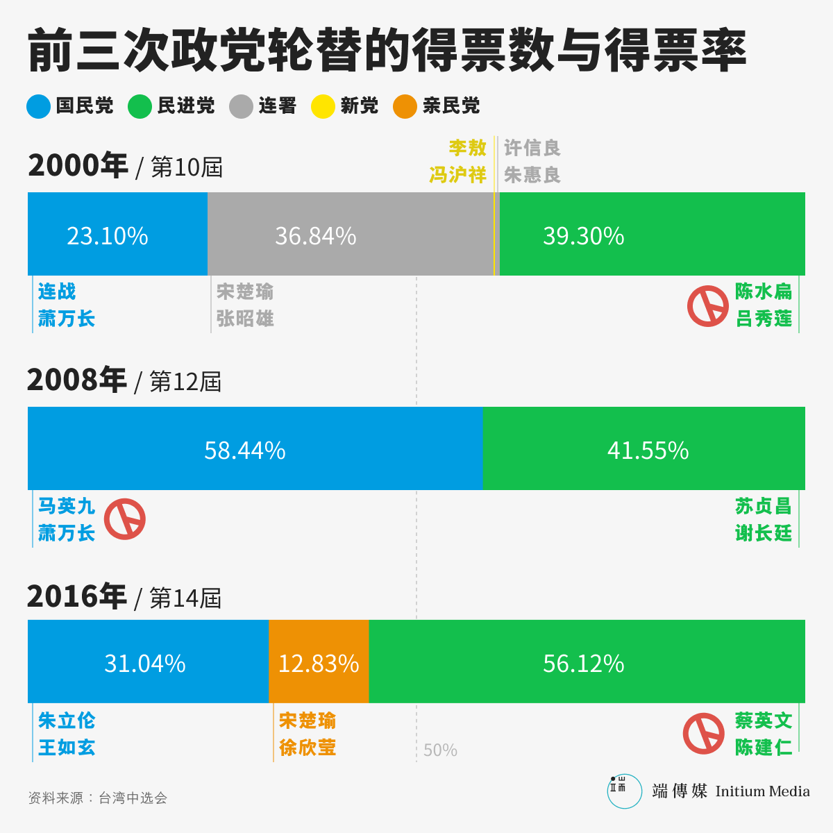 台湾自1996年总统直选以来,截至目前为止尚未有执政党可以连续执政第三任期。