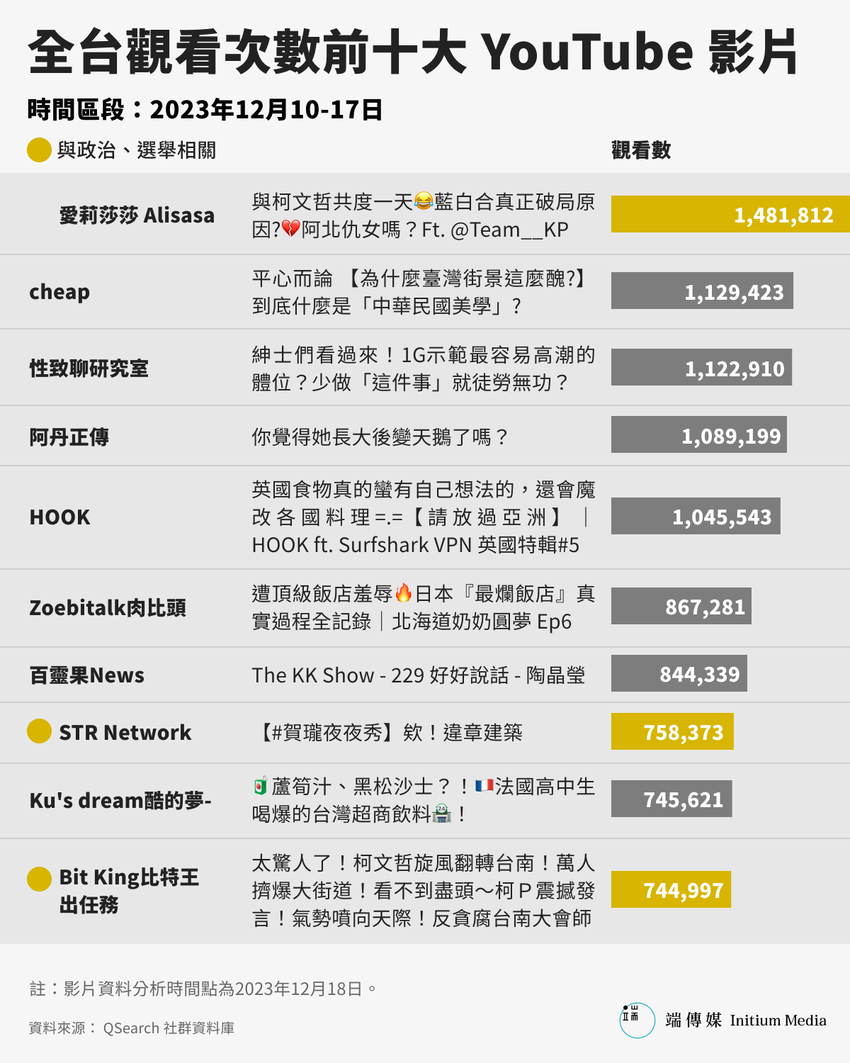 台灣大選將屆,在 YouTube 上的台灣人都看些什麼?同時,華文世界另一個巨大勤奮的「台灣相關訊息生產者」——也就是中國官宣系統——在大選前,又是如何「報導」台灣、向中國社會述說台灣?