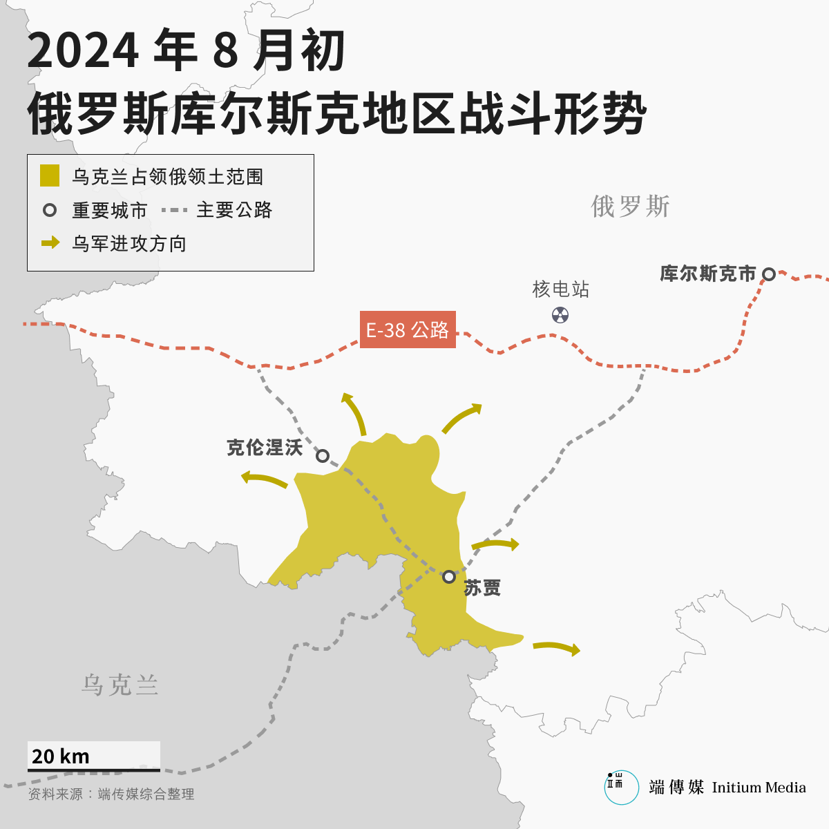 8月6日,乌克兰军队越过苏梅州(Sumy Oblast)北部的国境,进入俄罗斯库尔斯克州(Kursk Oblast)境内,并开始占领俄国领土。
