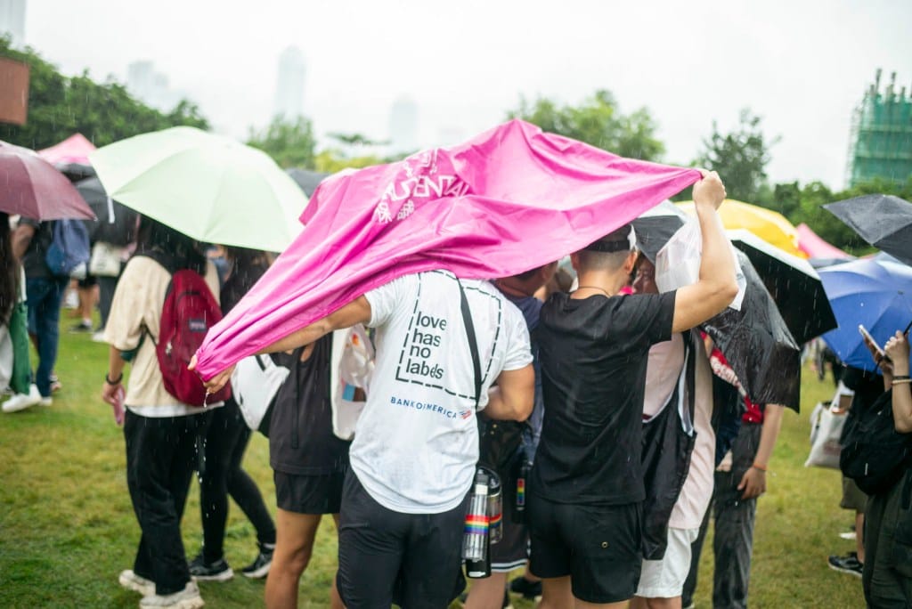 大會總監梁兆輝表示,沒想到十年前將活動從新加坡引入,如今大家會撐傘迎來第十年,「這十年,PinkDotHK 跟香港一樣,經歷許多巨變和挑戰——曾經停辦一年,曾轉戰網上,亦曾移師室內⋯⋯無論多變,我們仍然盡力守住這一點粉紅,守住簡單信念——尊重彼此差異,相信多元世界容得下每一個獨一無二。」