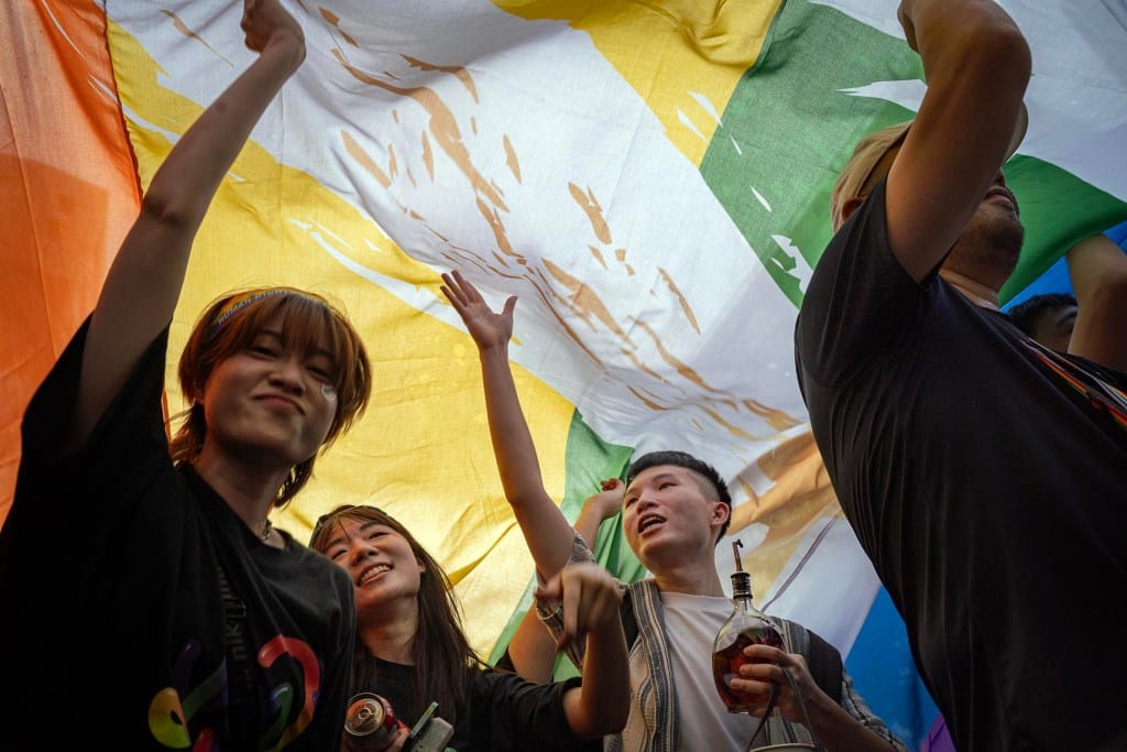 首度參加台灣同志遊行的香港女同志 Avery 與幾位同行友人只在台北待上三天,就是為了體驗台灣的同志遊行。在車隊大聲喧嘩歡呼的現場,他們一群人冷靜地站在捷運站旁,他說:「以前沒有想過要來,但現在香港已經不能集會遊行了,所以特地來看看。」