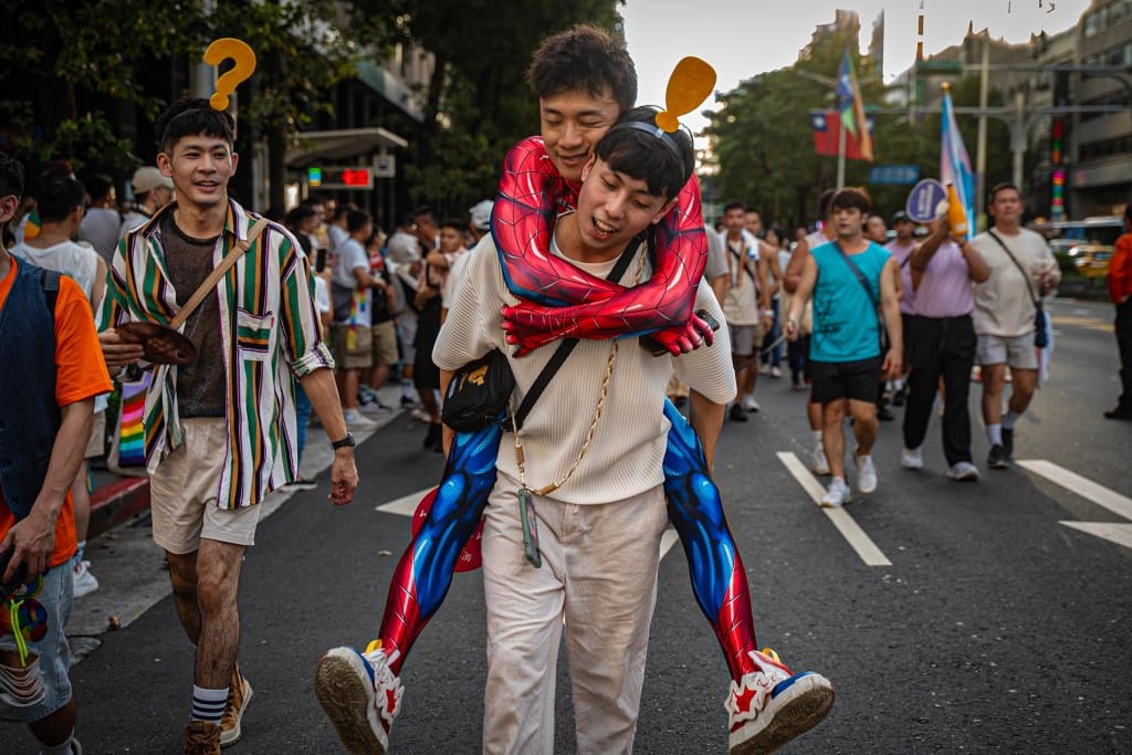 他比較兩地的同志活動氛圍,表示當初香港同志團體被允許集會時,也只著重於 Gay(男同志)和 Lesbian(女同志)的身份認同展現,而台灣的遊行更 diverse,不限於男同志或是女同志的性別認同,還有各種變裝皇后、Cosplay、性癖如 BDSM 的展演,吸引各國多元族群前來。遊行隔天就要搭上回港的班機,他們向記者表示希望未來再到台灣參加同志遊行。