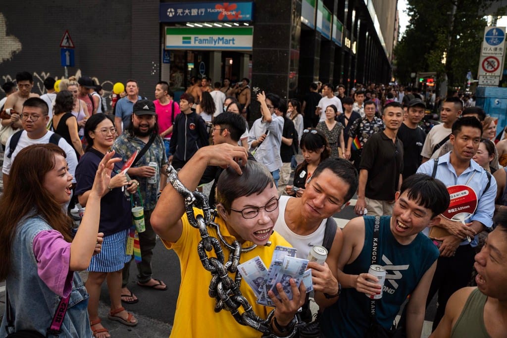 下午4時的忠孝東路上,擴音器播放 BLACKPINK Rosé 與火星人 Bruno Mars 最新發行的合作曲,整條街一起做出韓國酒桌遊戲的手勢,眾人不分國籍全都為車隊的選歌品味瘋狂。而已經有四次遊行經驗的 Mette穿著手工拼接短上衣和短裙,以亮眼的多巴胺穿搭在街邊跟著車隊 DJ 搖擺,也向記者展示他親手縫製的側背包。