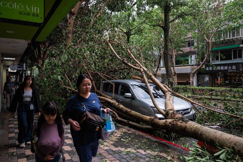 而从网友上传社群媒体的影片与照片显示,台北市区的强风豪雨导致大楼钢梁悬挂空中摆盪,招牌坠地翻滚、遭掀开的铁皮屋顶摇摇欲坠、铁门被强风吹飞、市区干道上的小学围墙倒塌,甚至晚间有公交车行驶路上,遭路树直接击中车窗,餐馆落地窗直接爆开,也有影片显示,道路上的机车骑士寸步难行,牵着摩托车勉力抵挡强风。 许多居住台北的网友皆提及,“这真的是近年来最有感的台风。”