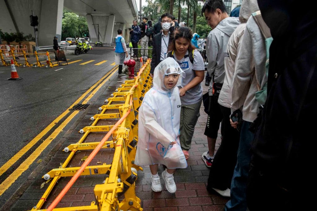 判刑日前夕晚上,据《法庭线》报道,庭外有逾70人排队待领公众筹号。 其中因「小彤群抽会」煽动案被捕的李盈姿一度被警方包围,她向《集志社》表示,警员指她在Facebook朋友限见帖文写的「全世界出西九」为「煽动」,要求她删除。