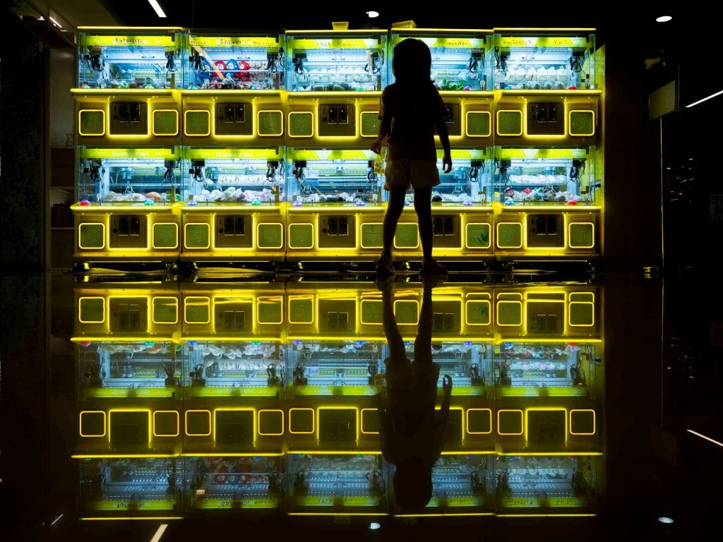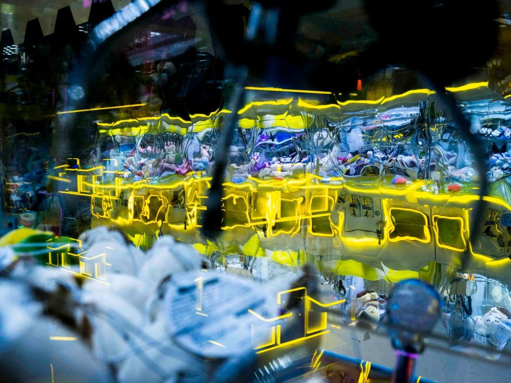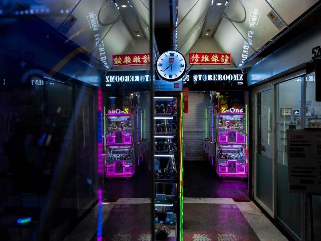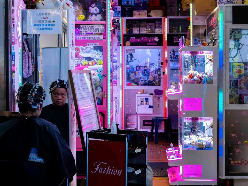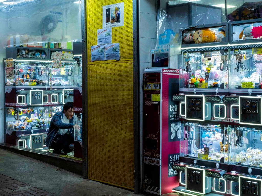 2024年香港晚上,寂靜的畸零暗角,一部夾公仔機發亮得刺眼,昭告夜仍然繽紛。