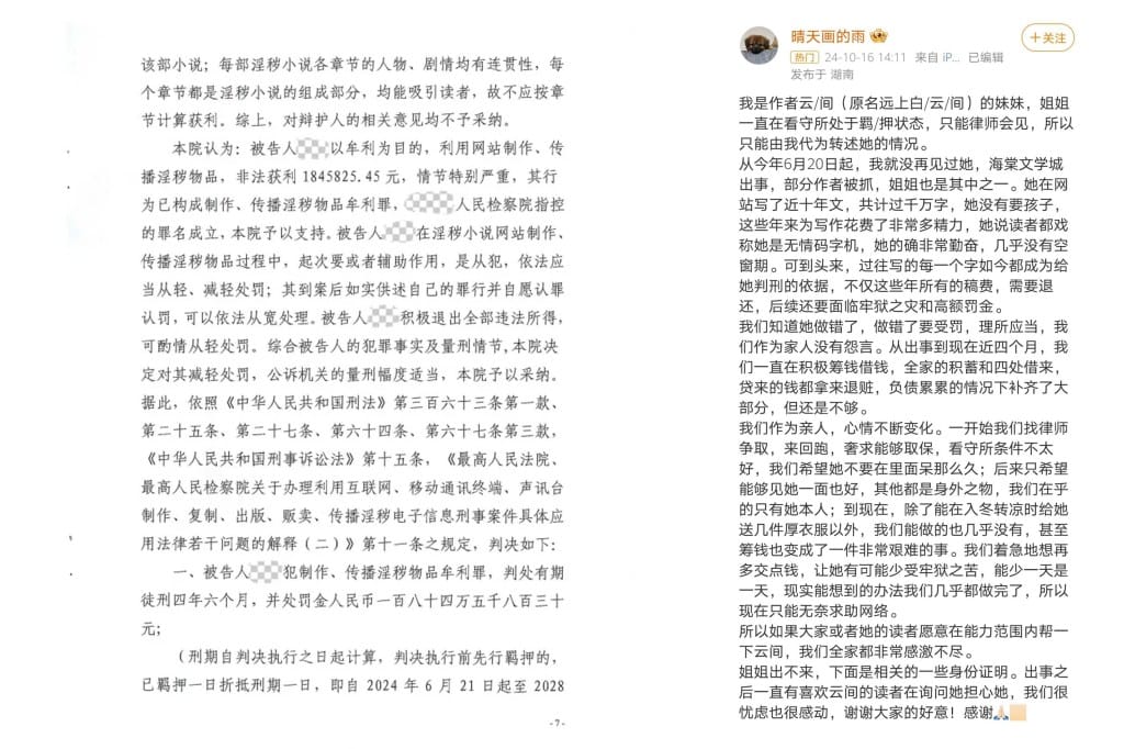 近期,中國一些耽美小說作者涉嫌「製作、傳播淫穢物品牟利罪」被捕和判刑的消息引起公衆關注。自2024年6月,台灣成人付費閱讀網站海棠文學城的一些作者停止更新,而後社交平台微博陸續出現多則貼文,至少有12位作者或其家屬發帖籌款以支付罰金。
