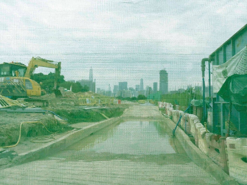 2024年10月,落马洲,新田科技城工地,前方是深圳的高楼大厦。摄影:陈碎念