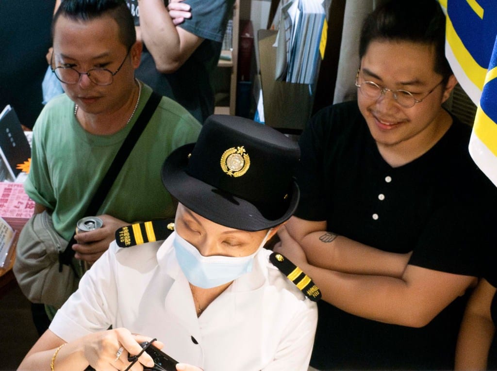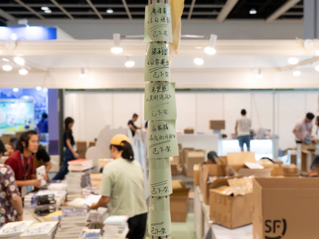 2024年7月,湾仔书展,有一参展书店《界限书店》展示被主办单位贸发局要求下架的书籍及作者名称。摄影:陈碎念