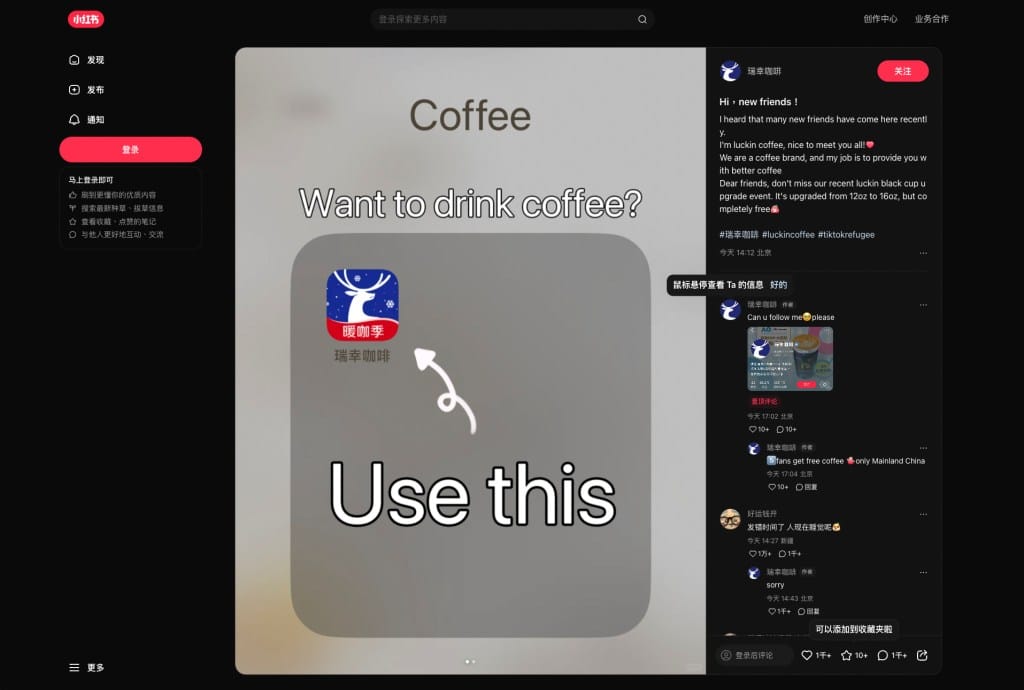 1月13日,大量TikTok博主為了應對美國聯邦法院對TikTok母公司字節跳動的禁令,在其賬號表示將遷移到「REDnote」(註:小紅書,中國最受歡迎的社交媒體)繼續更新。很多TikTok用戶將這個遷移行動視之為「對權威最後的反抗」。一時間,小紅書上出現大量外國博主和英文貼文,小紅書出現「tiktokrefugee」(TikTok難民)的標簽,截至1月14日下午六時,該話題已有9.6萬篇貼文、逾5350萬閱讀量,小紅書還被戲稱為「小洋書」。