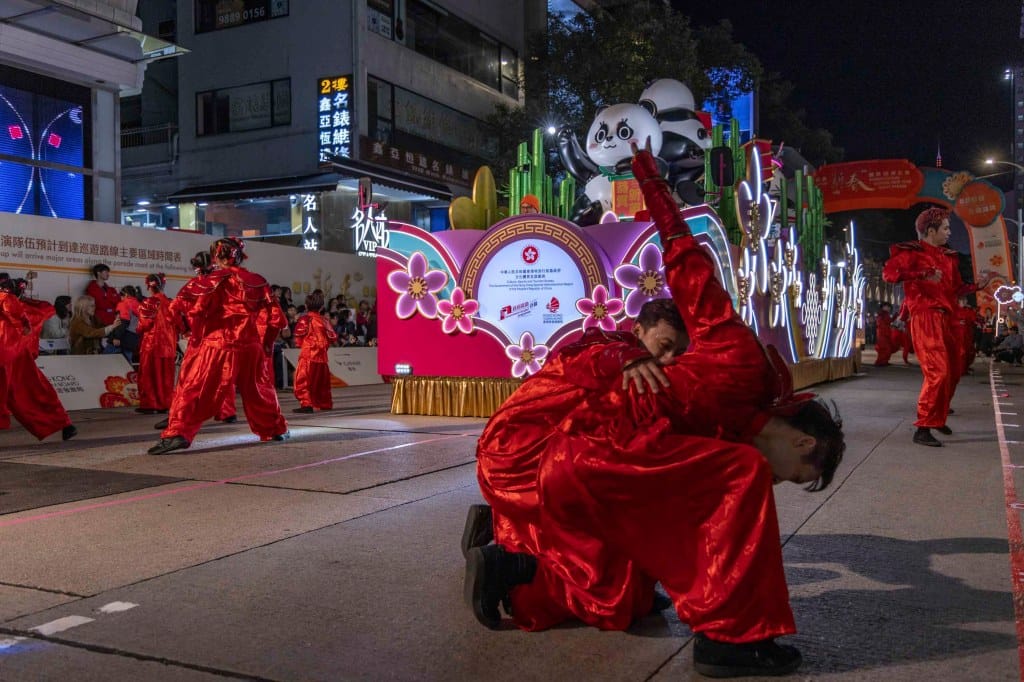 响应香港“无处不熊猫”的宣传,不少官方新年活动都加入大熊猫元素。年初一晚,新春花车巡游汇演在尖沙咀上演,文化体育及旅游局、旅游发展局及海洋公园设计的“熊猫畅游香港号”和亚洲旅游交流中心设计的“欢乐春节.文旅贺岁”花车,展出在高楼大厦和中式帆船面前吃富豪雪糕、打卡拍照等造型的熊猫,后者融入“你好!中国”标志、配以中国各省市从湖南到新疆的文旅宣传口号,香港和澳门也位列其中。