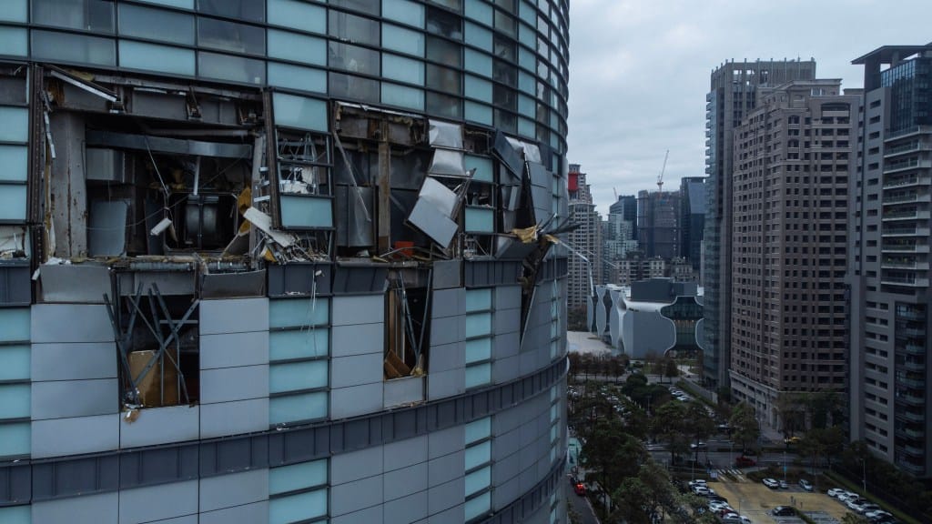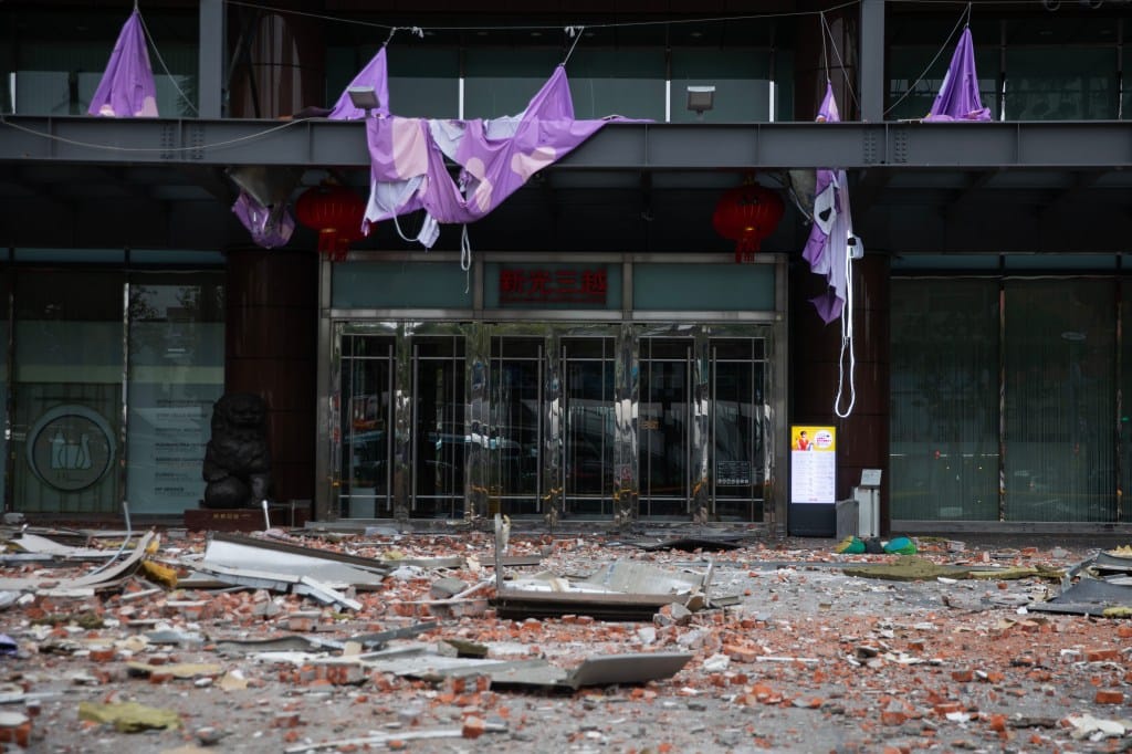 记者在百货外观察,新光三越百货为圆弧型设计,整面沿著弧型外墙的建材一整排由内而外遭“爆破”,损害范围辽阔,因而引发建筑结构是否受损的疑虑。对此,台中市副市长郑照新指出,结构技师已入内鉴定受损情况。