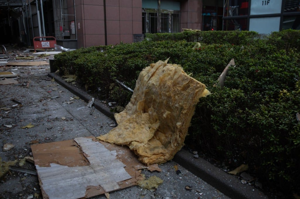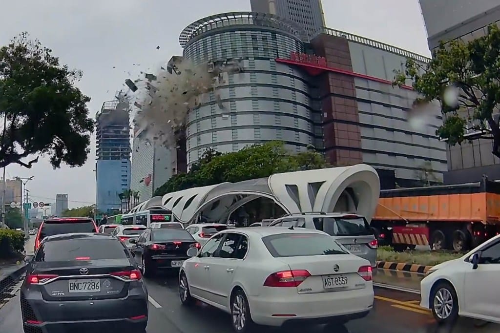 依据现场画面,室内天花板大片塌陷,钢筋、管线掉落。气爆发生当下,来往车辆的行车记录器记录下气爆瞬间,可见建筑物外部瞬间炸裂,整面的外墙碎片从高楼层喷出,往下飞溅,波及多名底下正在行走的路人。