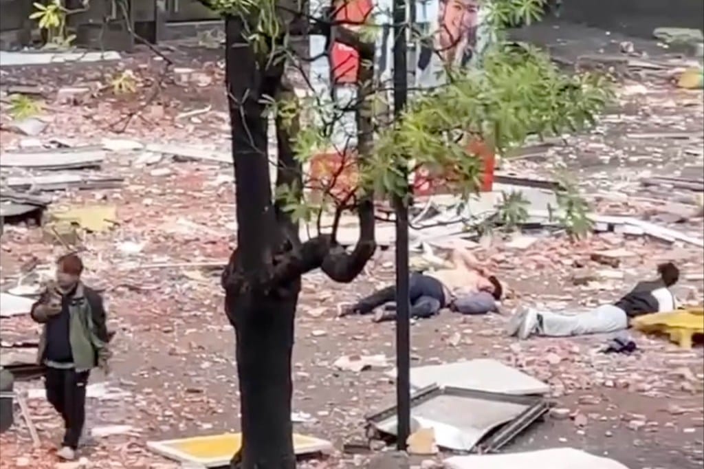 根据目击者上传社群媒体的画面,气爆威力猛烈,现场建筑外建材散落、厚重玻璃碎裂,画面显示有3至4名民众倒卧在百货公司外广场上,事发后有伤者被紧急送医,现场亦有救护人员正对伤者实施CPR。