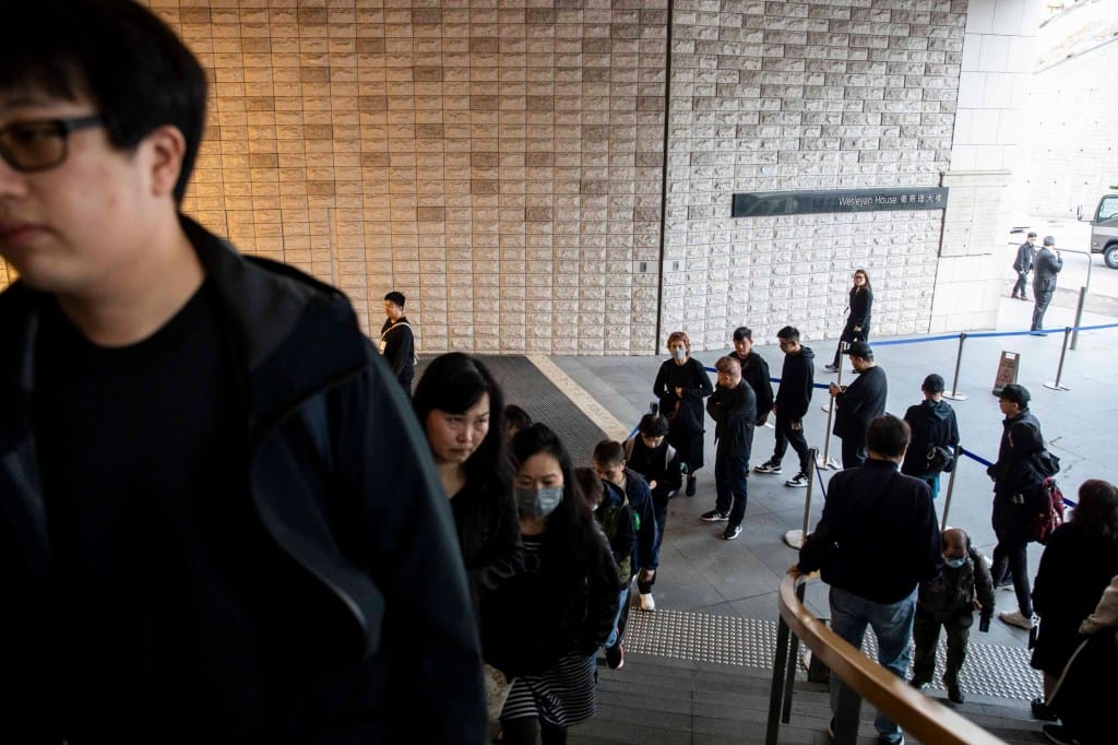 警方佈防下,逾百市民流水式悼念