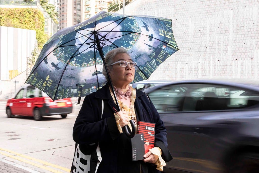 也有不少來悼念的市民與邵家臻素未謀面,當中包括60多歲的 CC。她拿著邵家臻撰寫、有關囚權的著作《字𥚃囚間》到場。她在禮拜堂門口前打開印上「香港」二字的雨傘,站立默哀。
