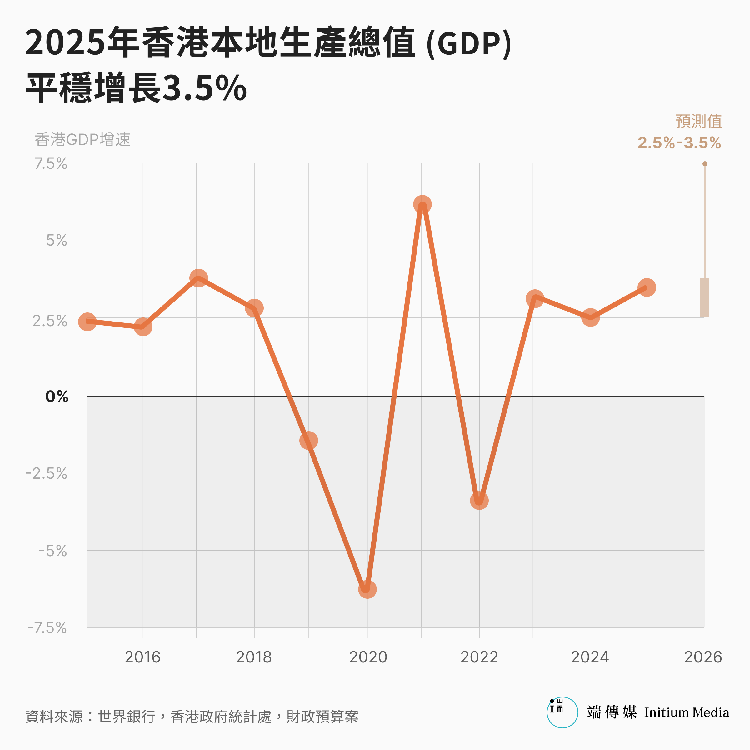 在經濟表現方面,預算案形容香港去年經濟蓬勃,連續三年增長,全年整體經濟增幅3.5%,當中股票市場暢旺,首次公開發售IPO為全球第一,而旅客亦攀升,去年訪港旅客近5000萬人次。前瞻2026年經濟,預算案料全球貿易緊張局勢緩和,中國實施積極有為的宏觀政策,香港在2026年可增長2.5%至3.5%。