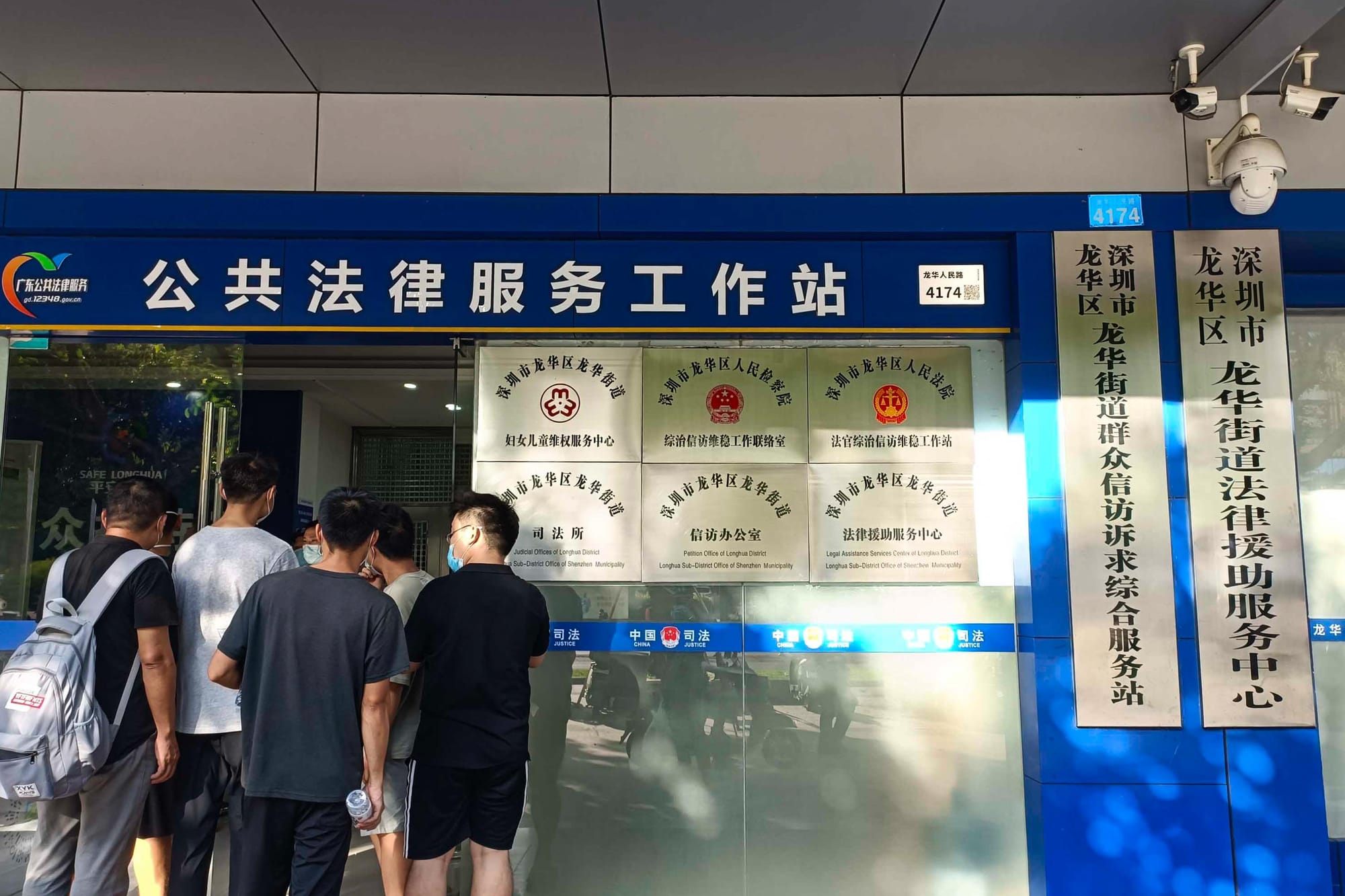 我们徒步到了龙华街道办,街道办工作人员又带着我们去了对面的司法所。这时的在场人员里,已经有了更多不同诉求的人。有个小伙子在门口写遗书,说自己被其他中介骗到了浙江。