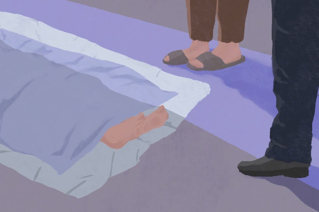 警察告訴我們,如果沒有殯儀館的人來接走伯伯,那麼就需要由驗屍官來處理,再送去醫院殮房,而驗屍官工作忙碌,到達的時間「depends」(看情況)——兩小時到二十四小時不等。