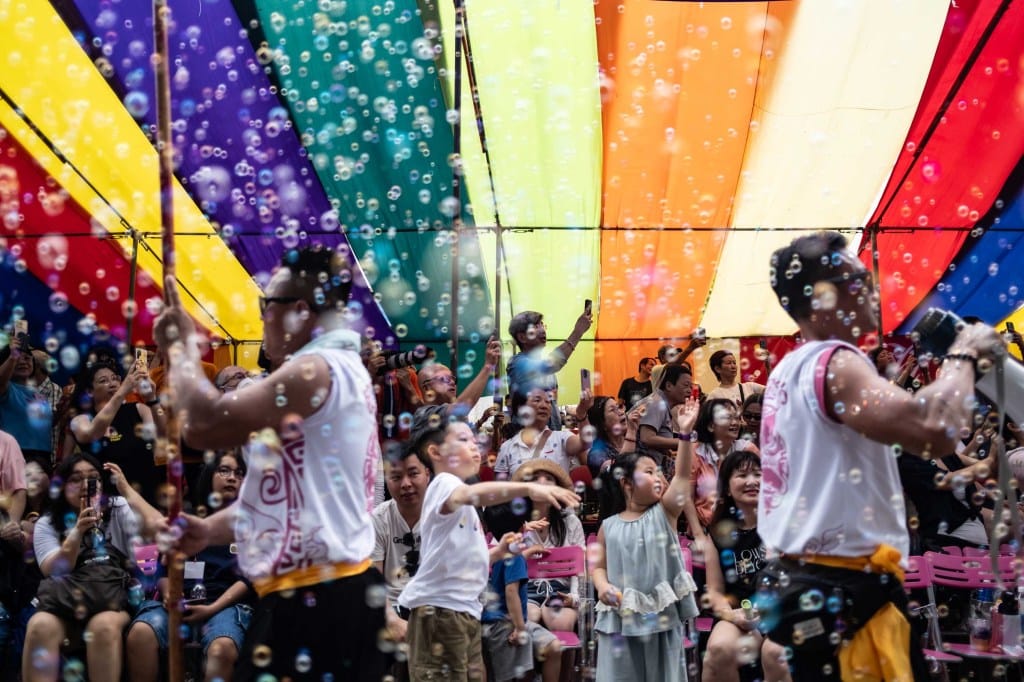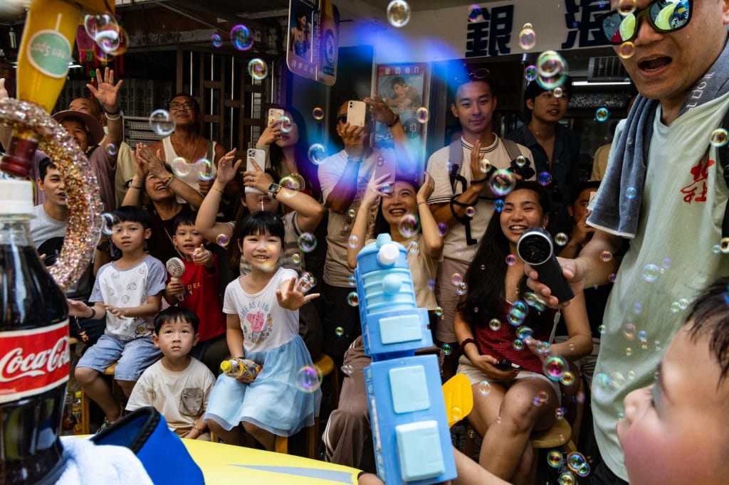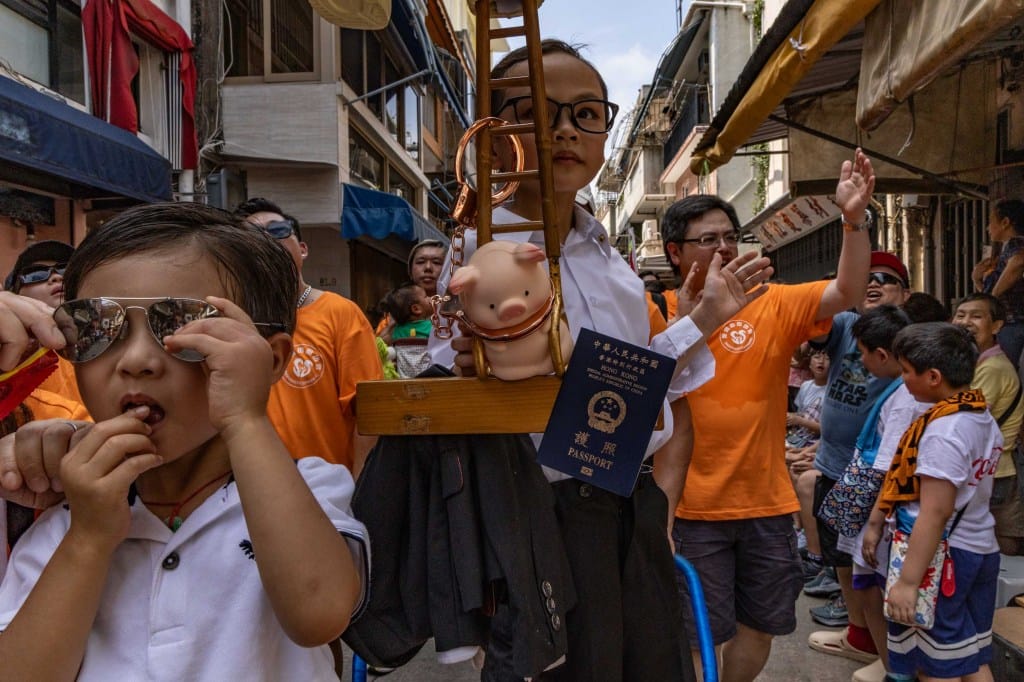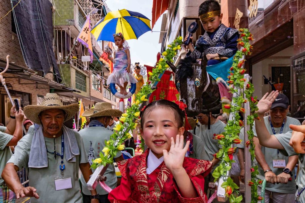 农历四月初五至初九,香港长洲岛上举行太平清醮。其中,飘色巡游在碰上五一黄金周的佛诞日(5月5日)举办。疫后第三年,飘色巡游的色芯转变依旧反映时局变化,游客带著欢笑满载而归,而岛上居民商舖则忧心人潮不如往昔。